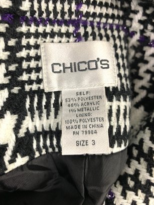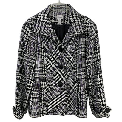 Chico's Black, White & Purple Houndstooth Pattern Peacoat (Women's Size 3/XL) - #CR