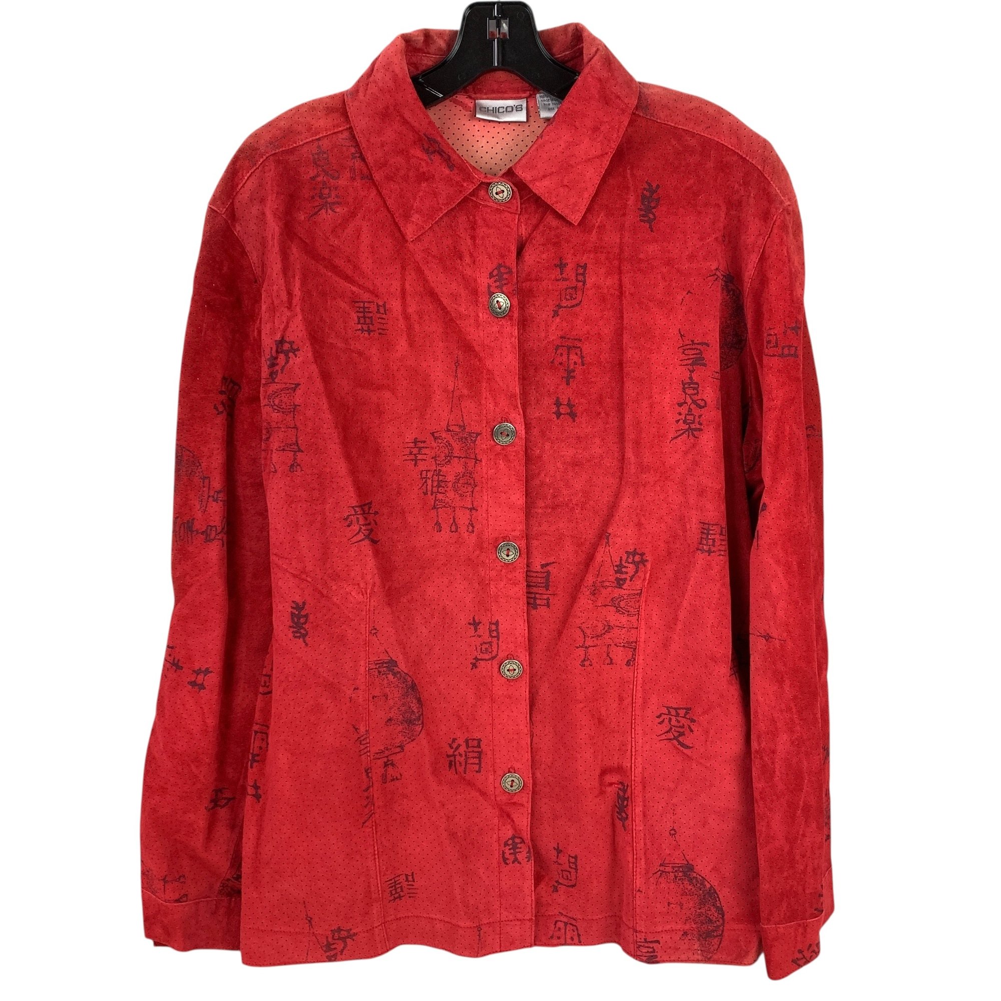 Chico's Chinese Lantern/Character Pattern Suede Leather Jacket, Women's Size 3 (X-Large) - #CR