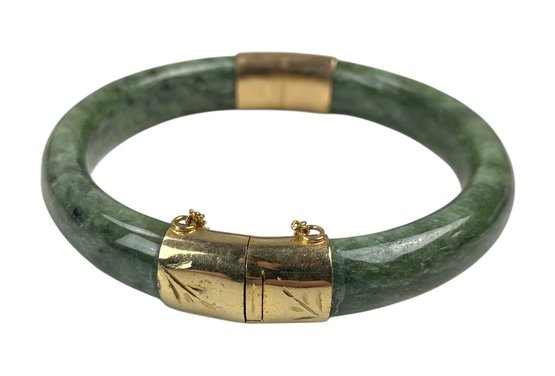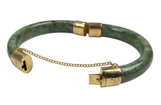 The hinged bracelet is stamped "SILVER."