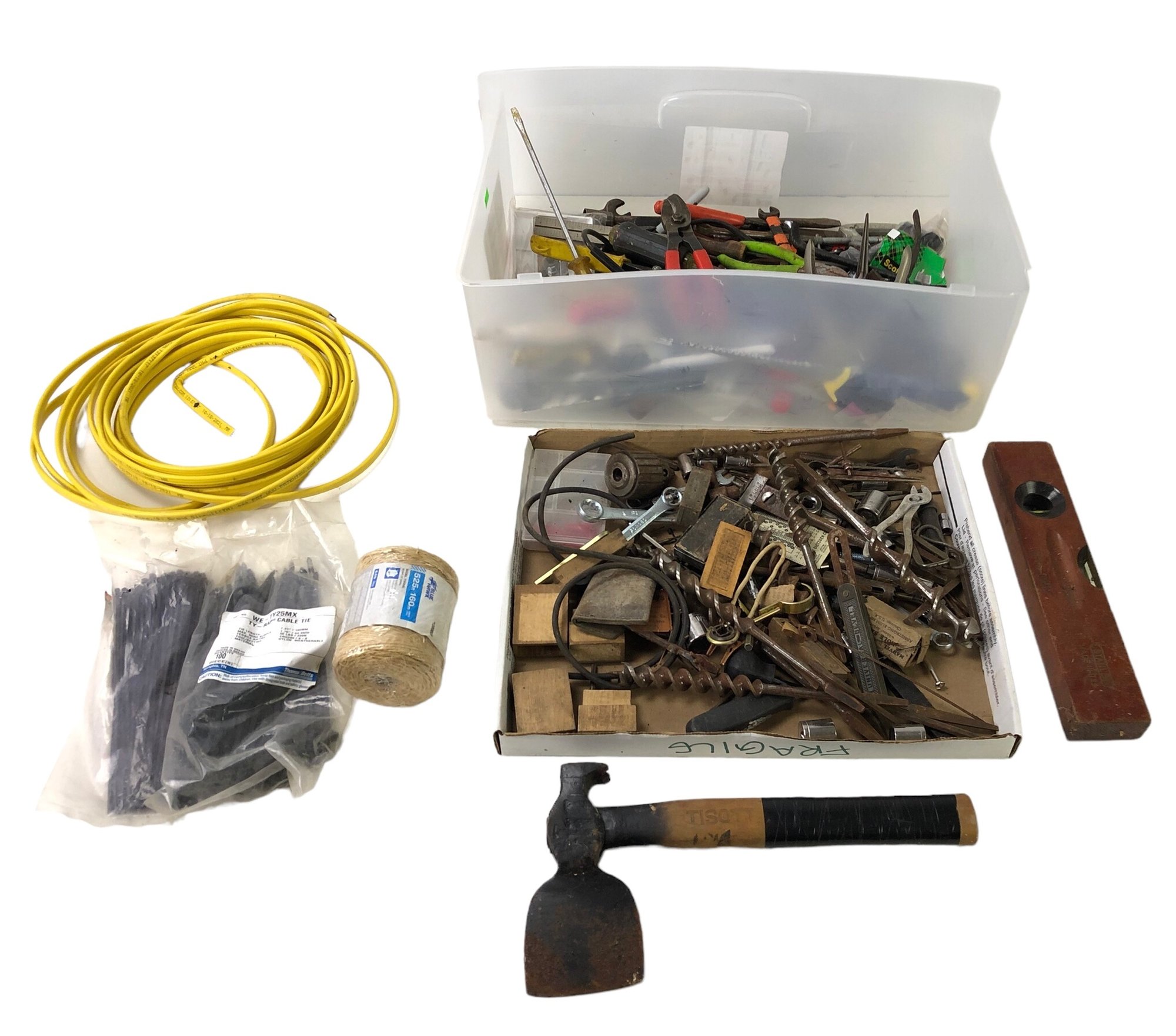 Collection Of Assorted Tools: Hatchet, Drill Bits, Pliers, Cable Ties & More - #S13-2