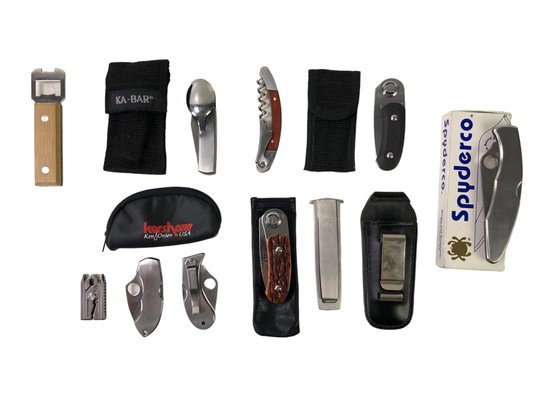 Collection Of Folding Utility Knives & Multitools: Ka-Bar, Gerber, Spyderco - #S18-4