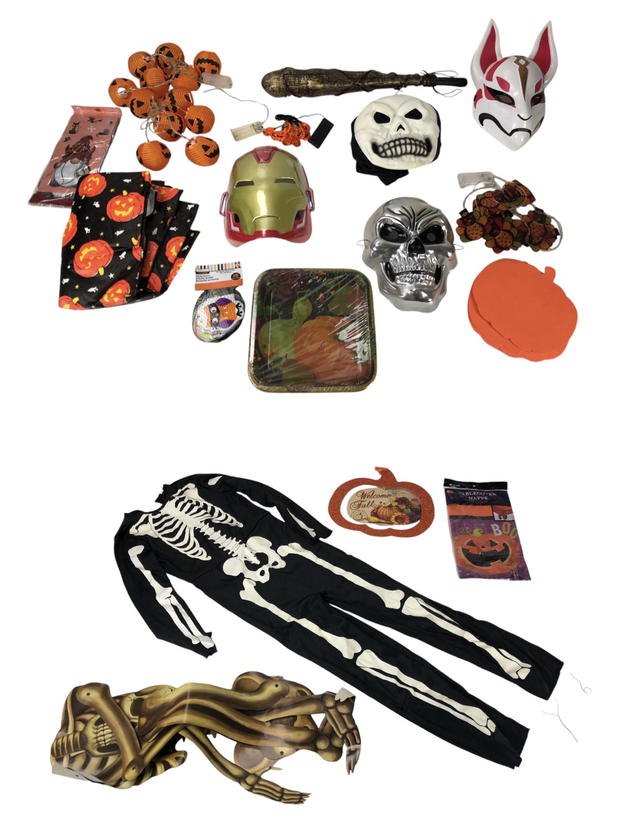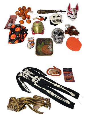 Collection Of Halloween Masks, Light-Up Skeleton Costume & Decor - #S18-2