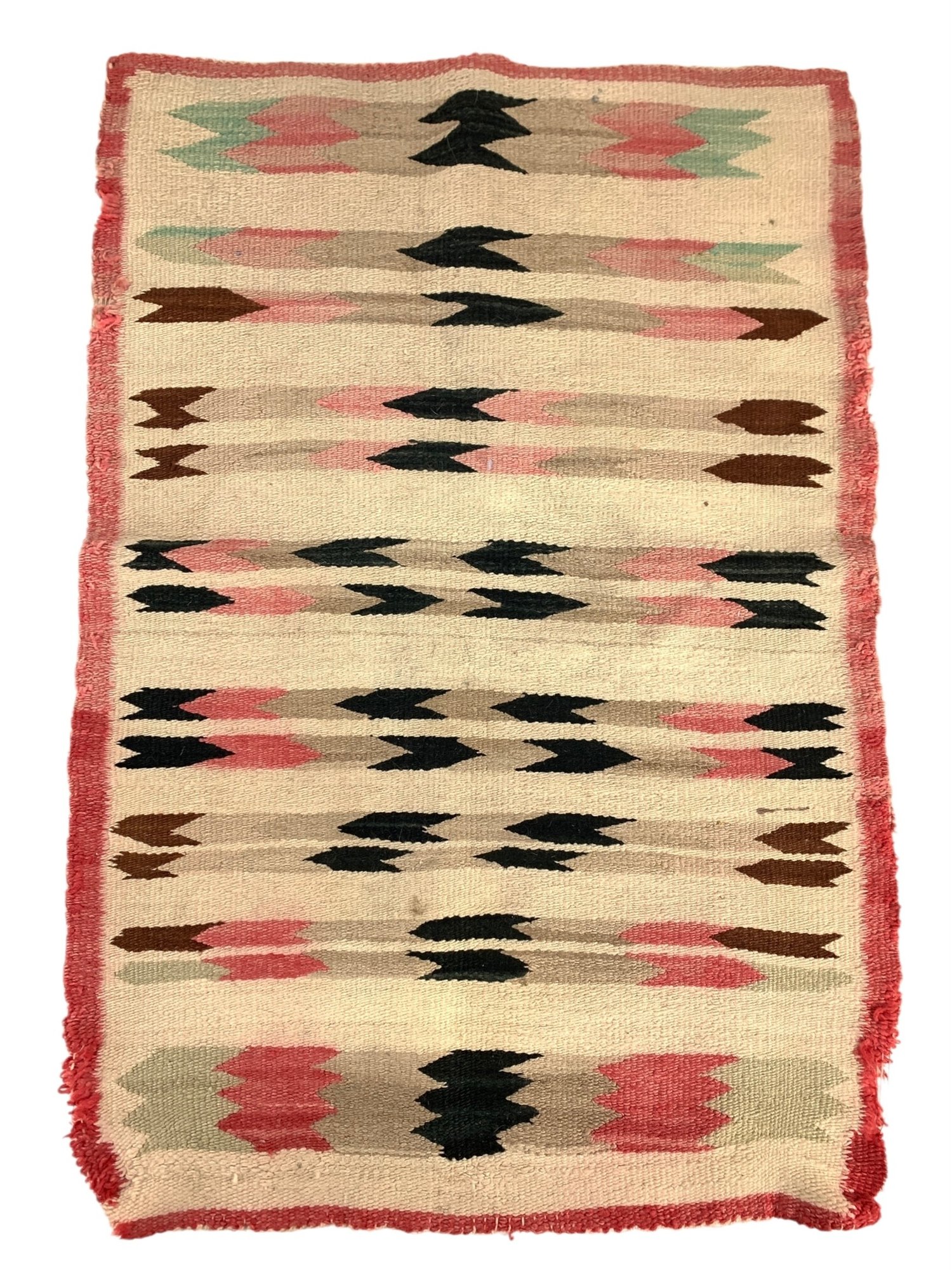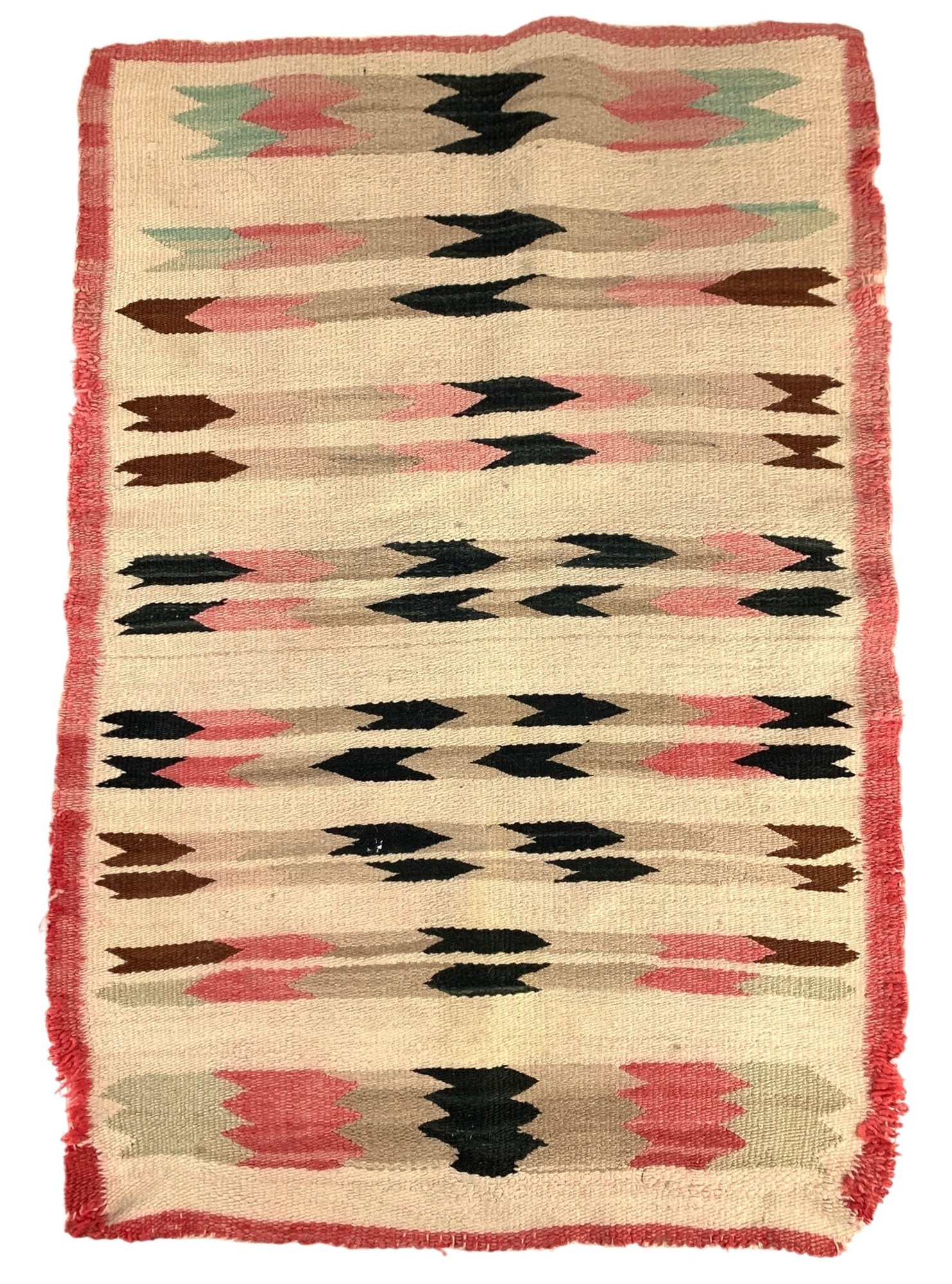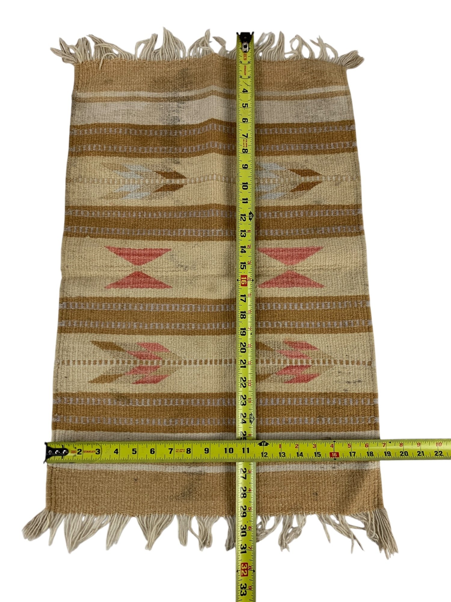 Estate rugs may show some wear and imperfections - please bid accordingly.Peruvian Rug: 19"W x 29-1/2"LPink/Black Rug: 24"W x 35"LBeige Rug: 18-1/2"W x 31"L