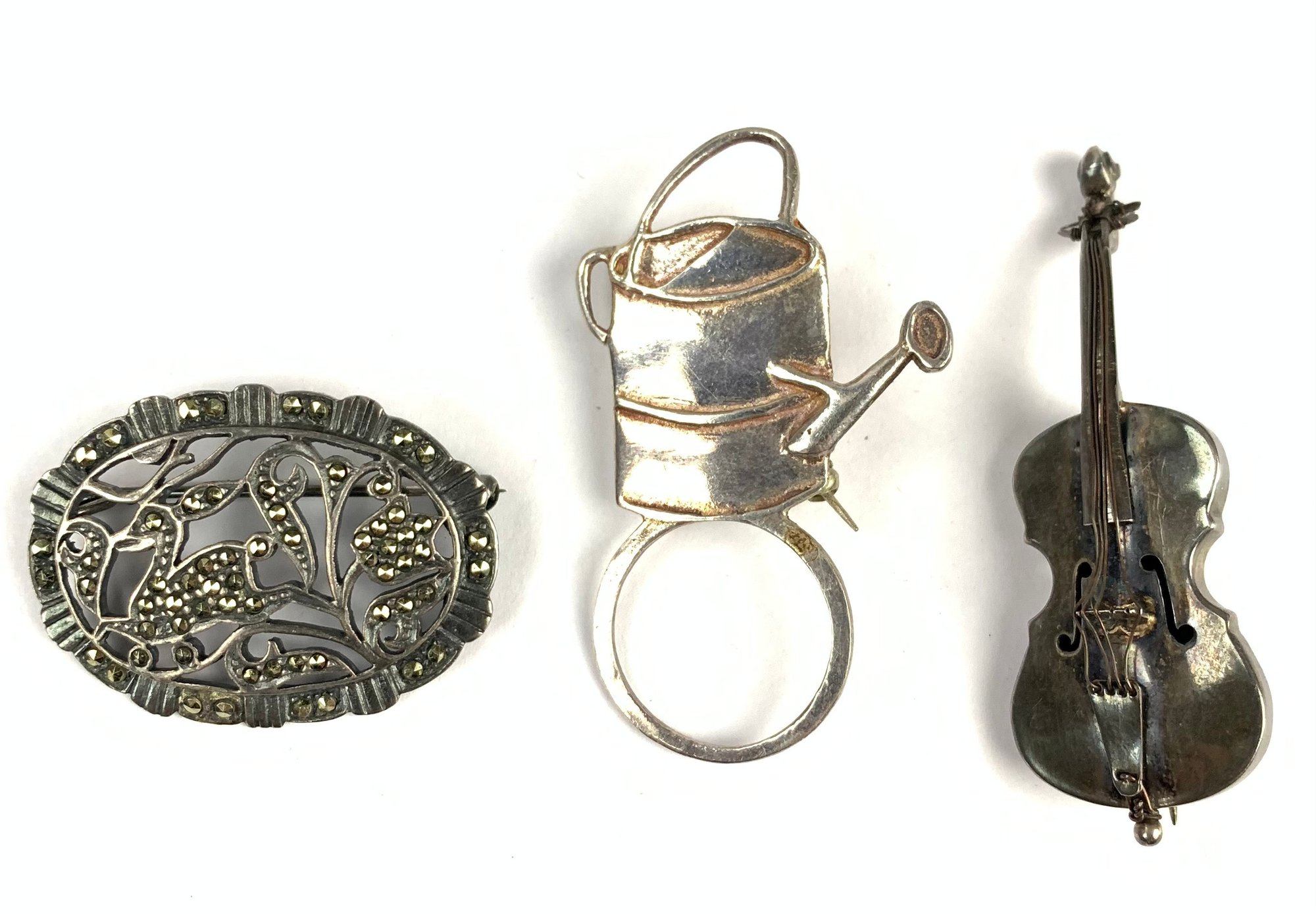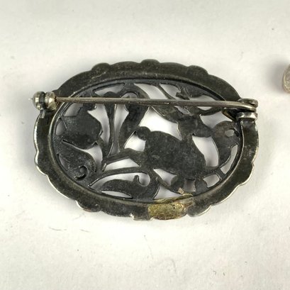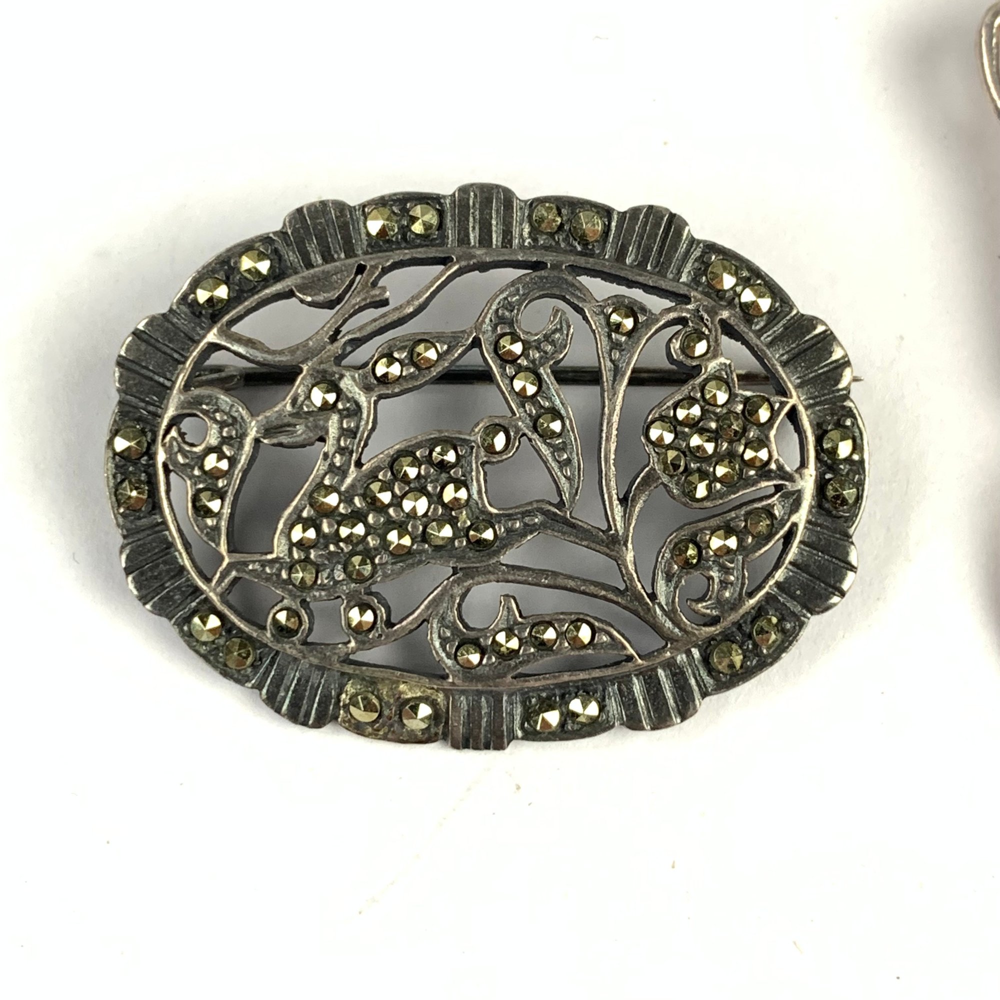 The deer brooch is silver plated with marcasite.