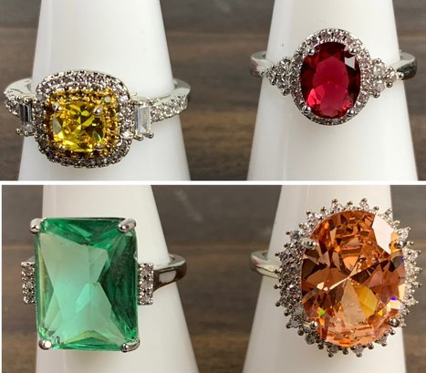 Three rings are stamped 925 on the shank, one ring is not marked.