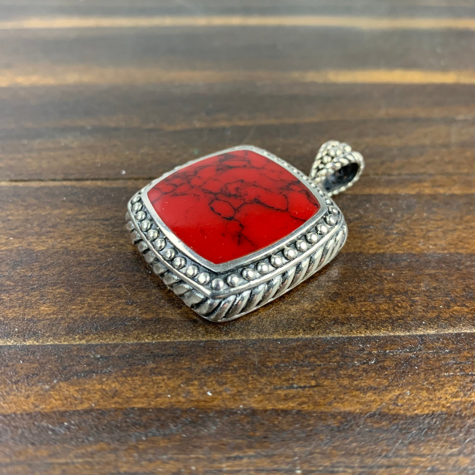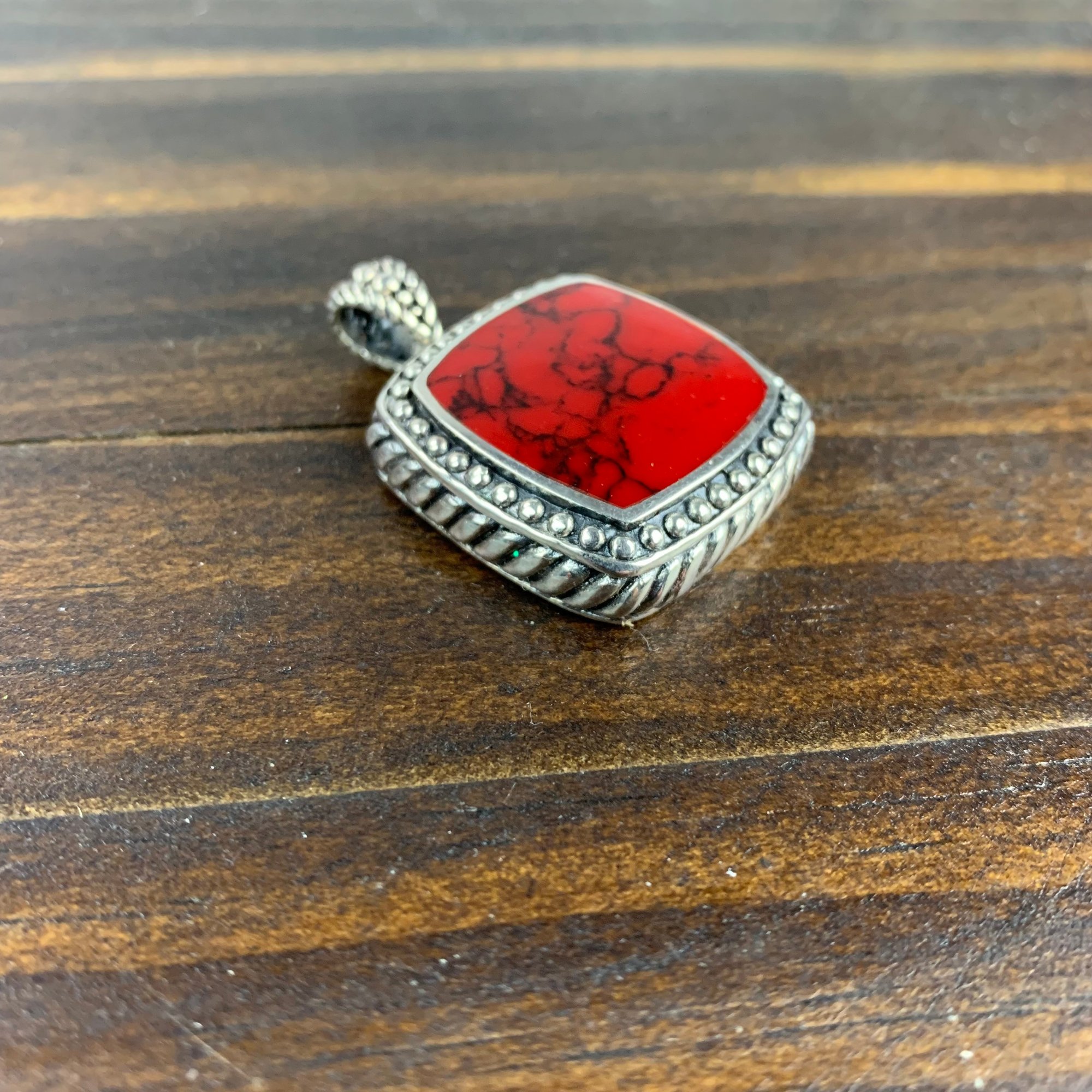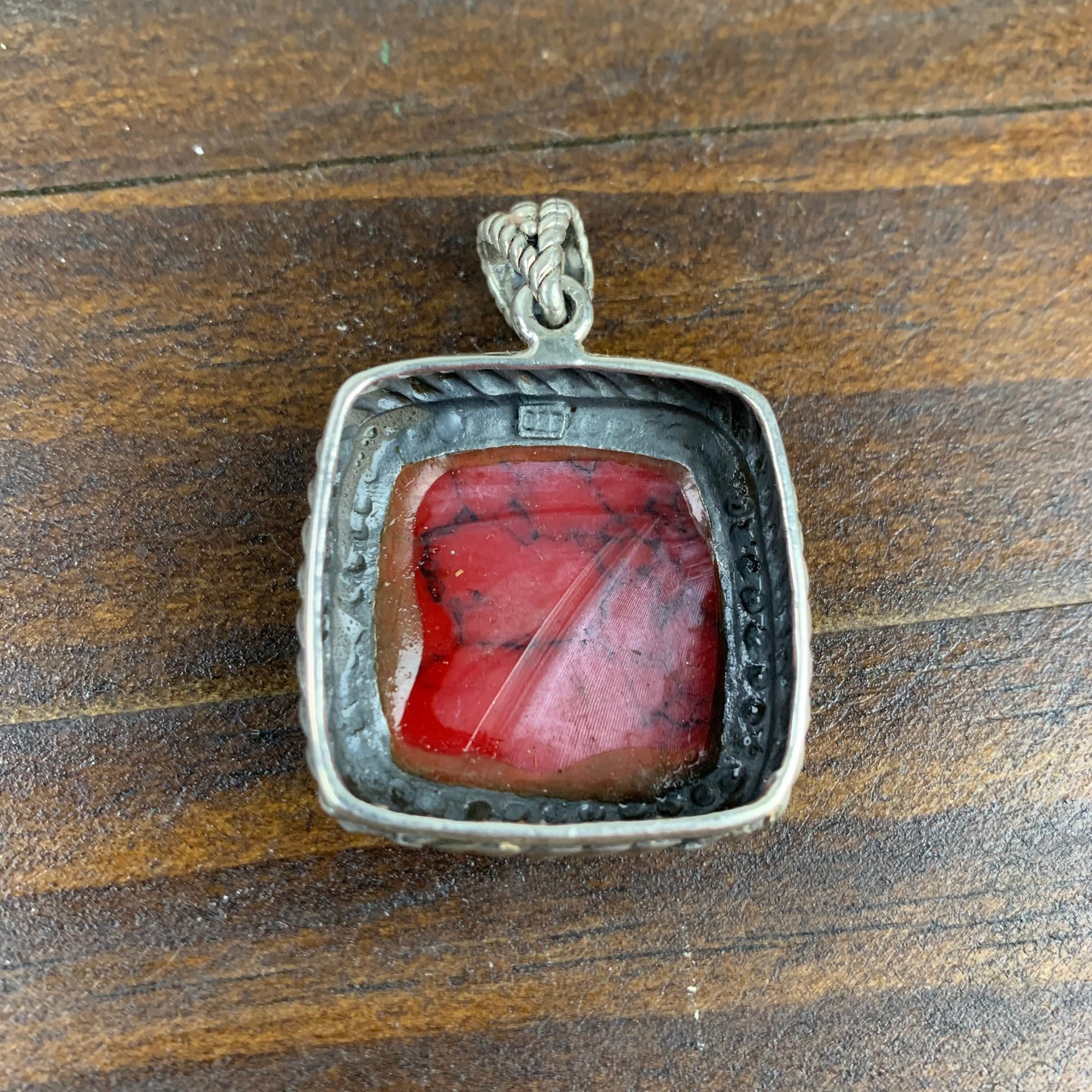 The red pendant is stamped "925" on the back.