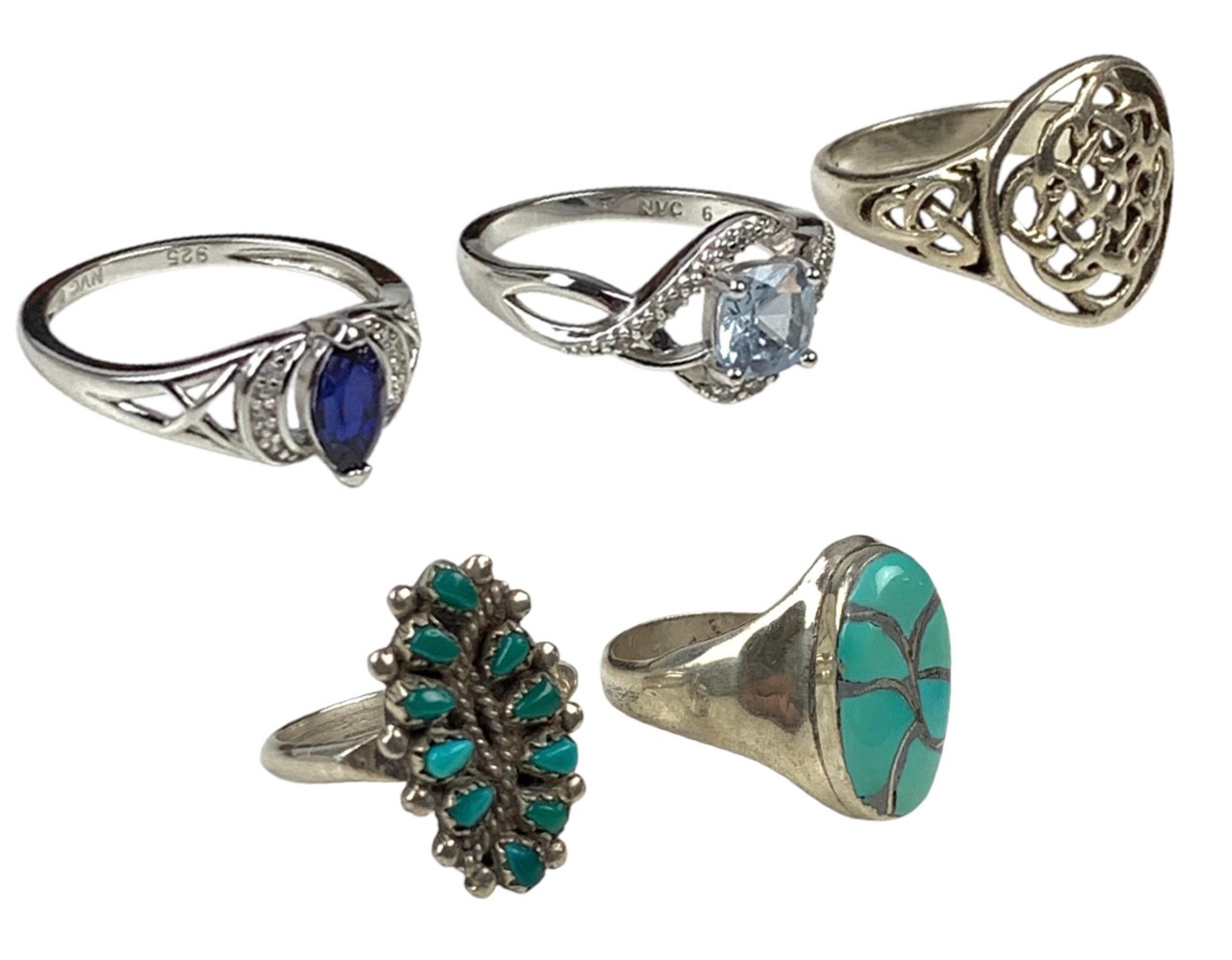 Three are stamped 925, one is signed and one does not have any markings.