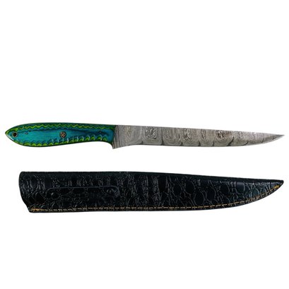 Damascus Steel Fillet / Boning Knife With Leather Sheath - #S7-2