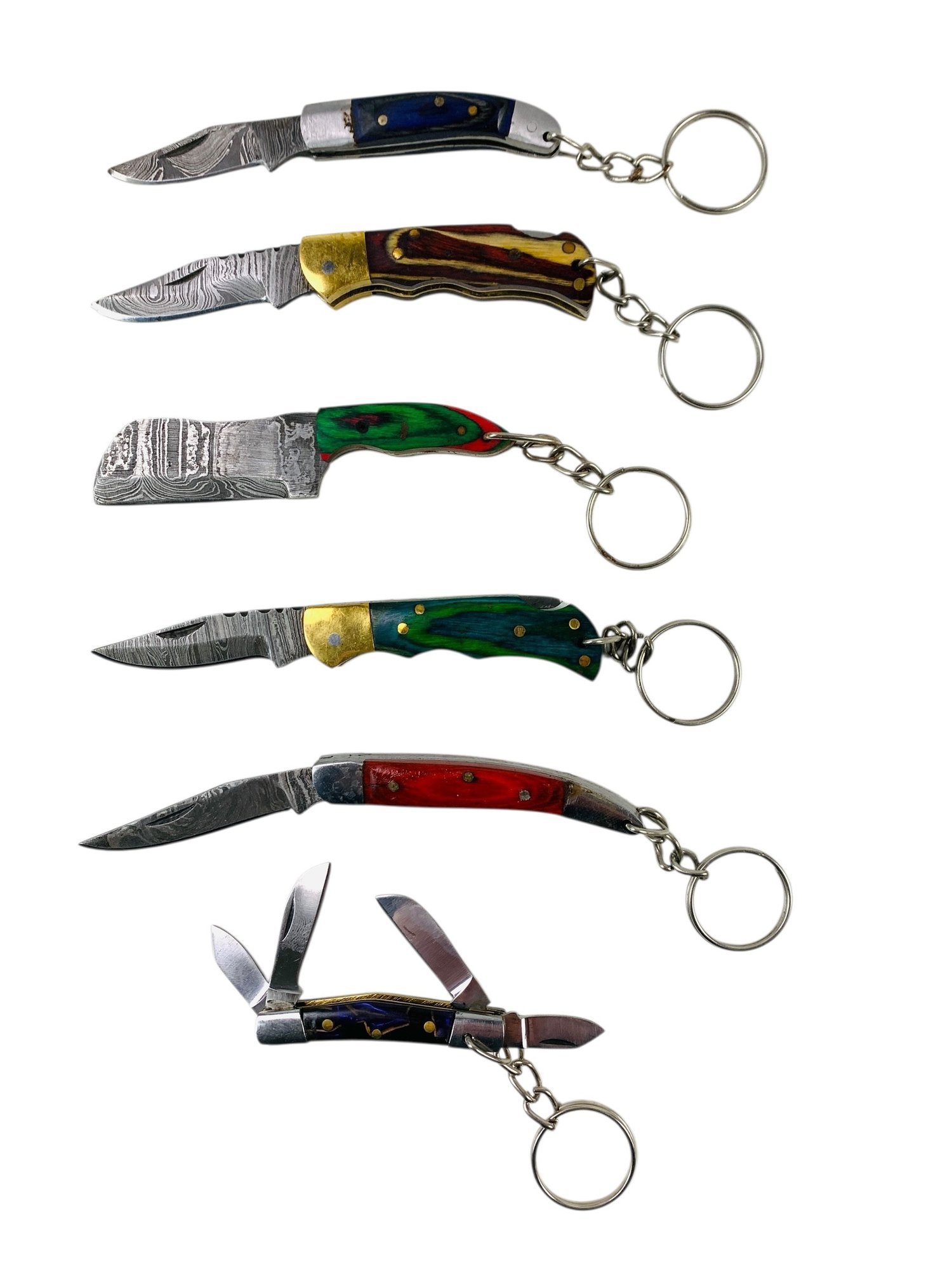 Damascus Steel Keychain Knives / Pocket Knives (Set Of 6) - #S7-2