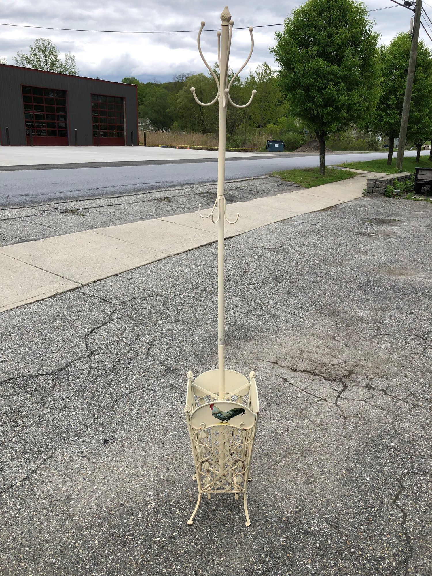 Hand painted rooster on the umbrella stand.
