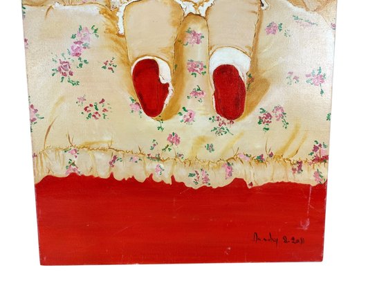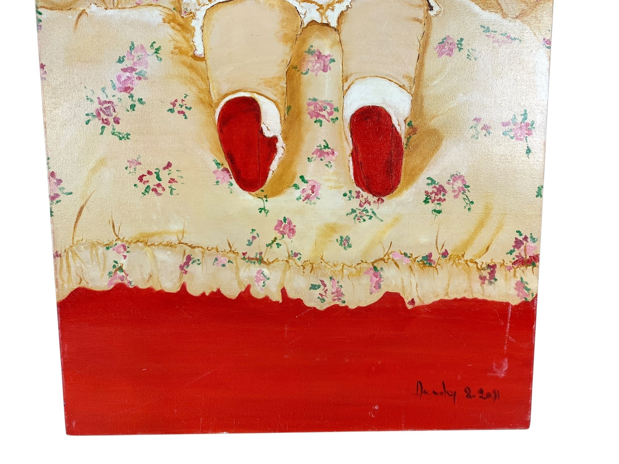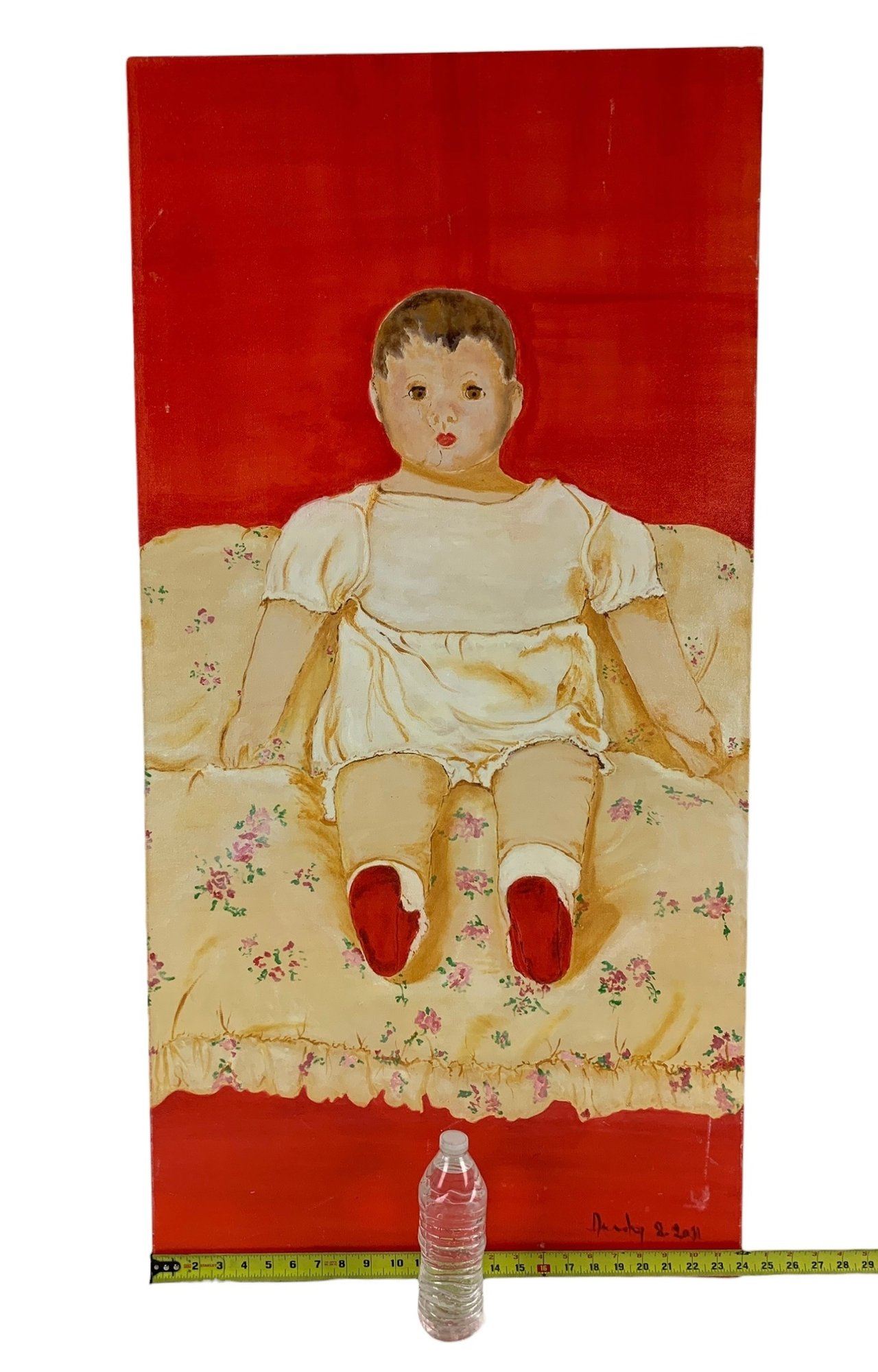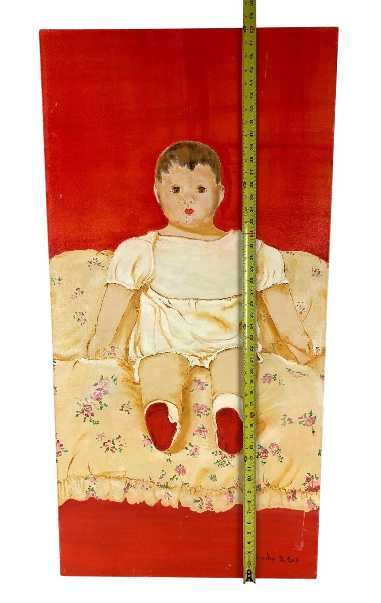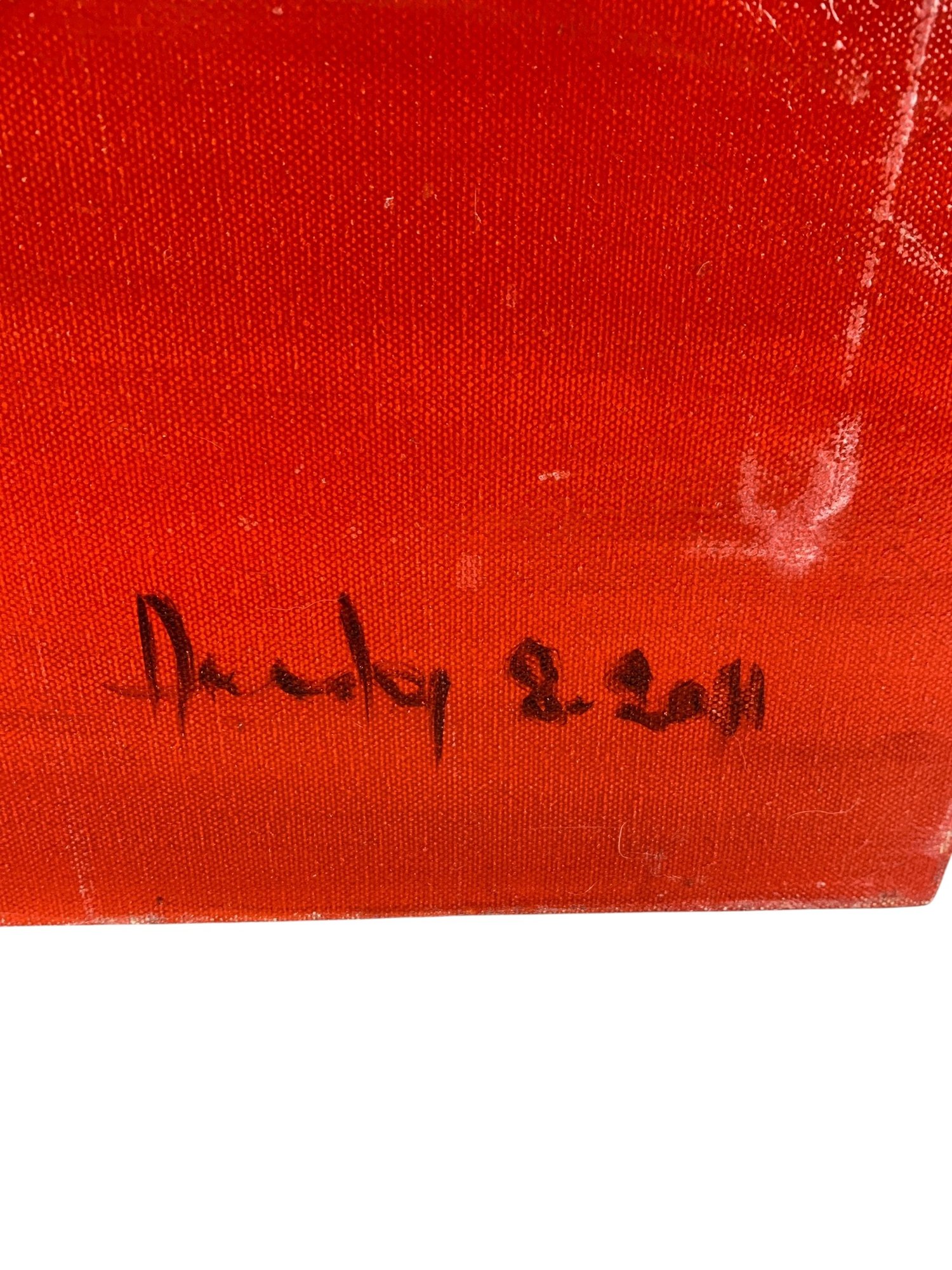 Light mark noted on the lower right of the canvas.