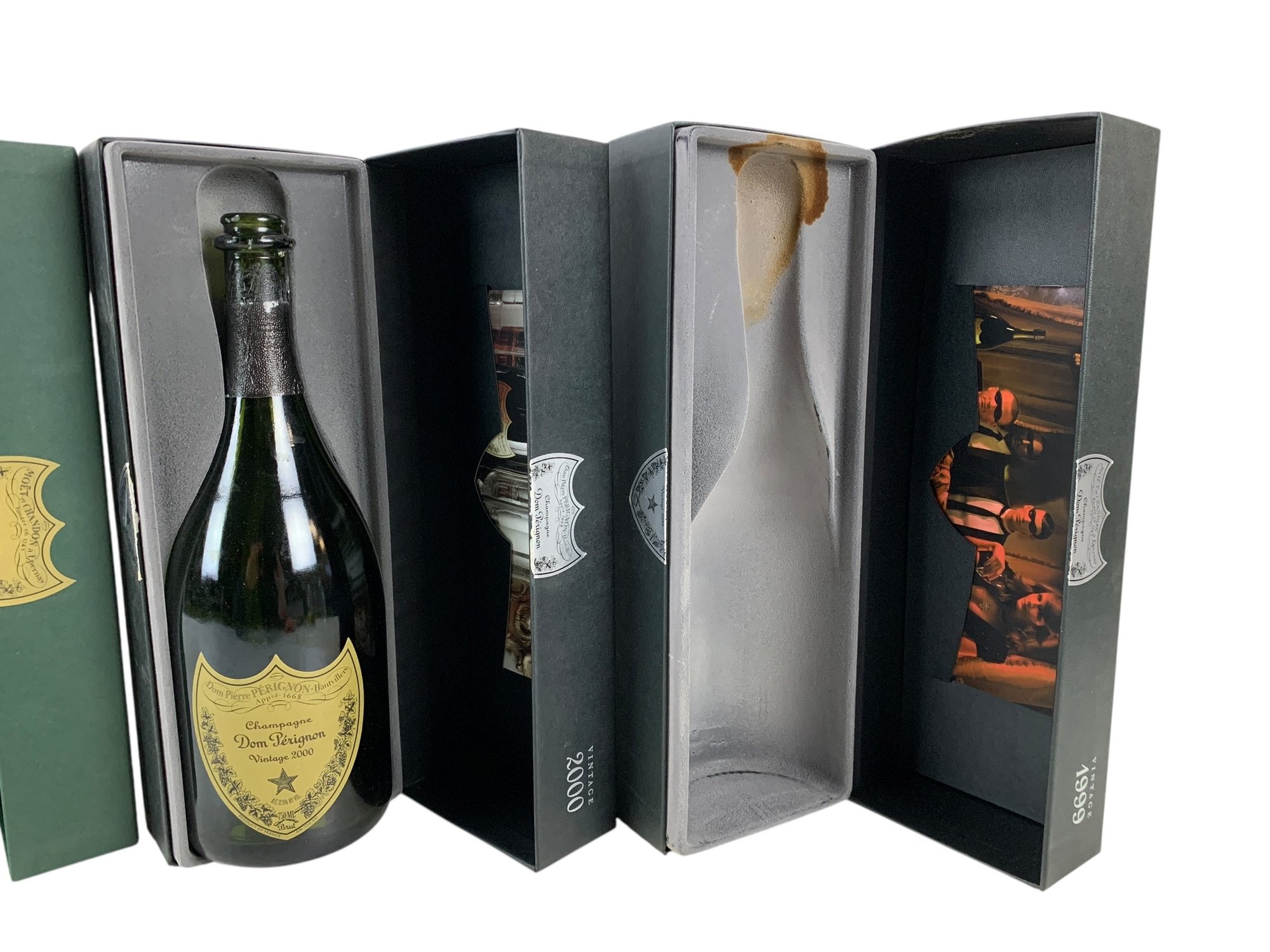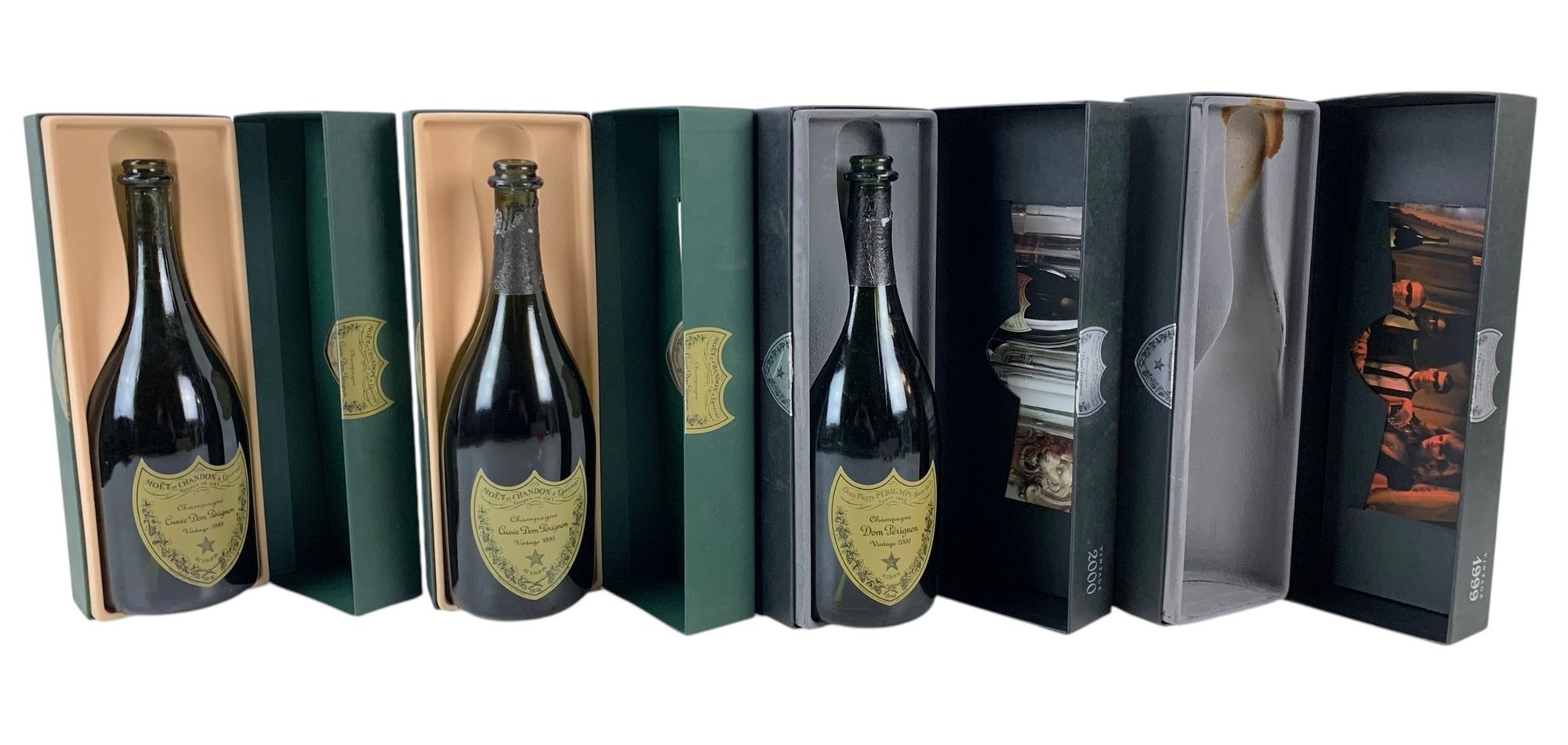 Includes 3 bottles with accompanying boxes, and 1 empty box (without the bottle) from the 1999 vintage.