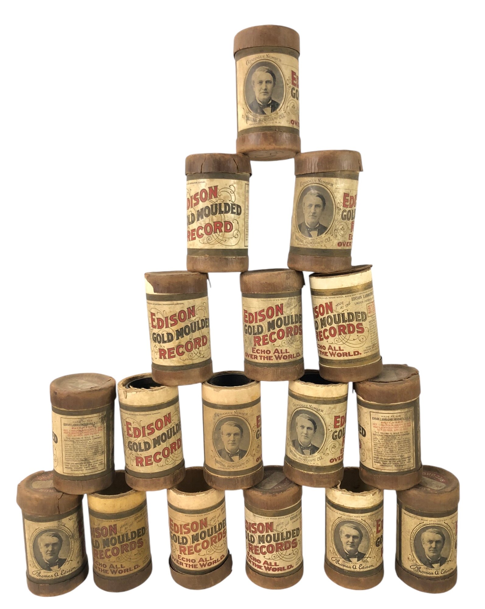 Includes 12 wax cylinder gramophone records - 5 of the tubes are empty.