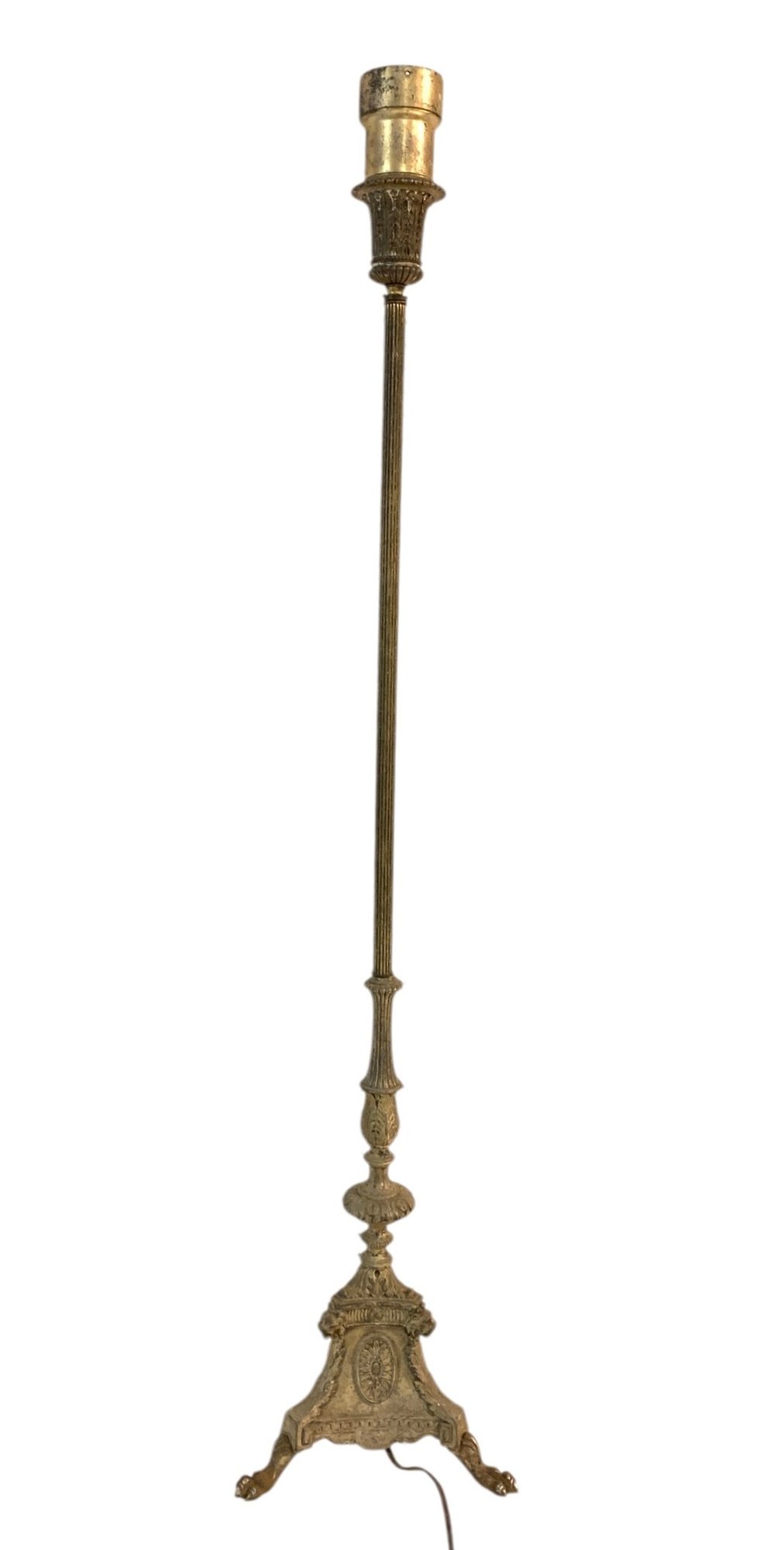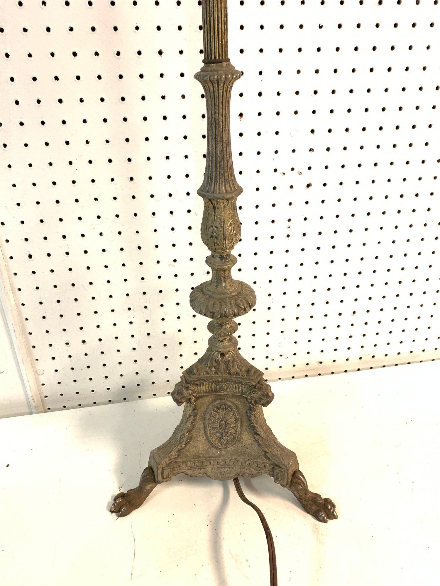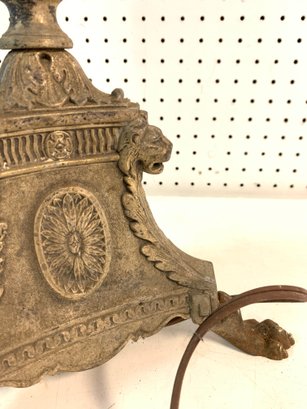 Features a clawfoot tripod base adorned with lion heads and floral medallions.