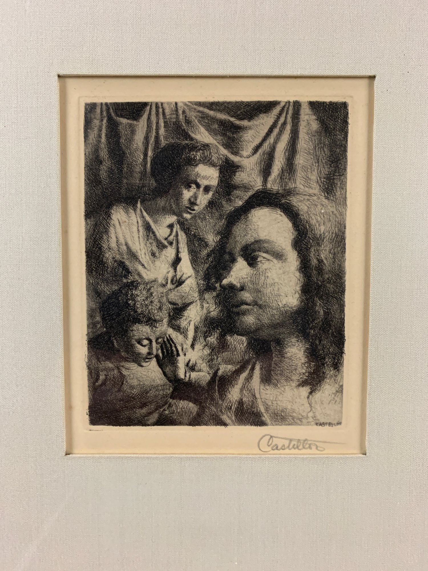 Framed and matted under glass.