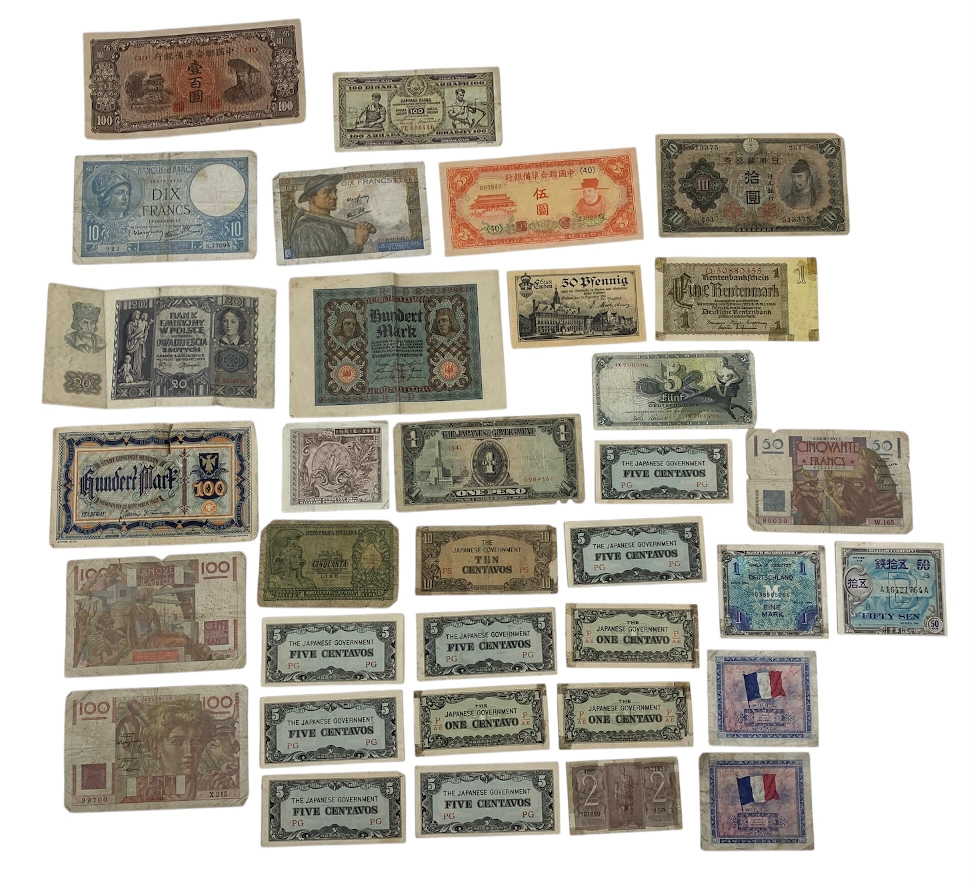 Foreign Bank Notes (Many WWI & WWII Era)- #S13-2