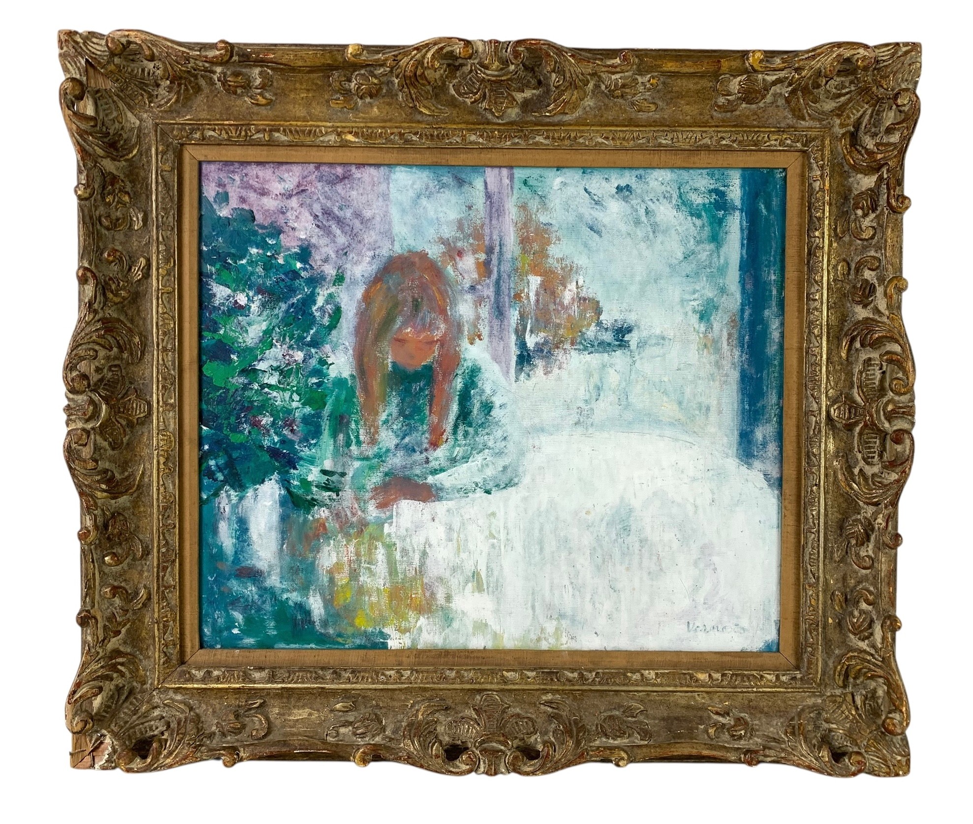Dimple noted on the top center of the painting.