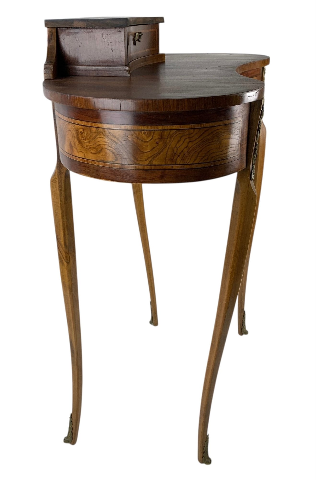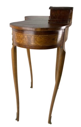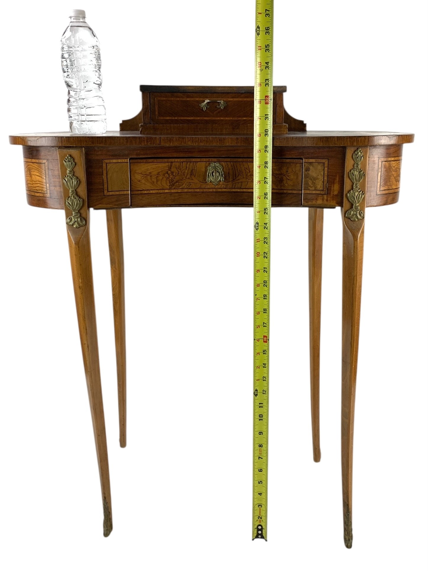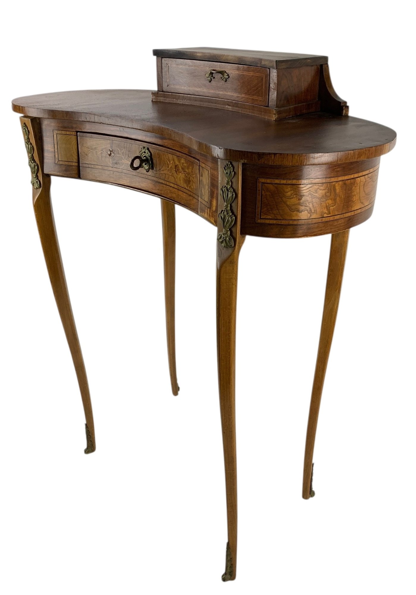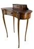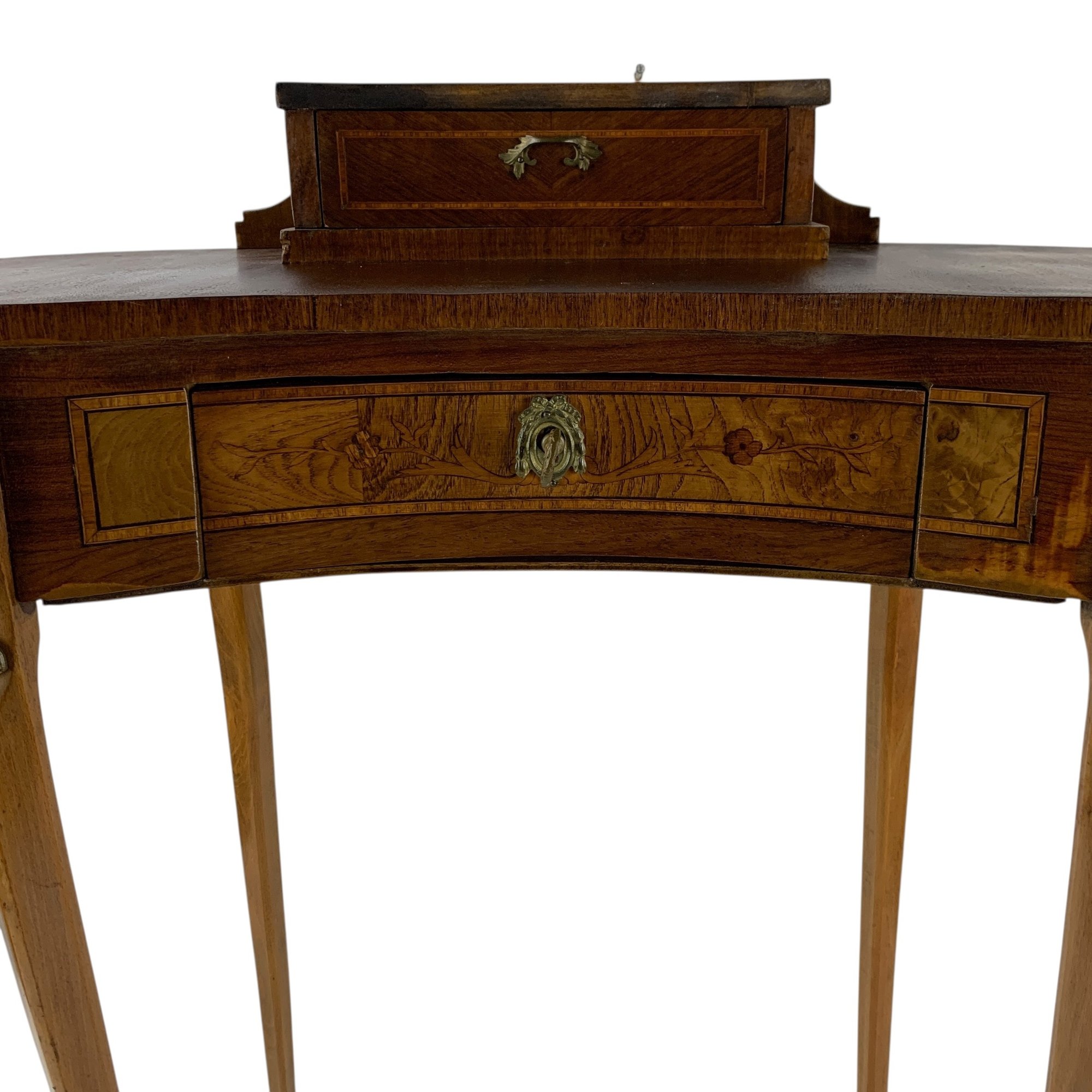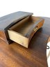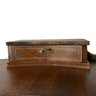 Features a locking main drawer, upper storage compartment with brass feet and hardware.