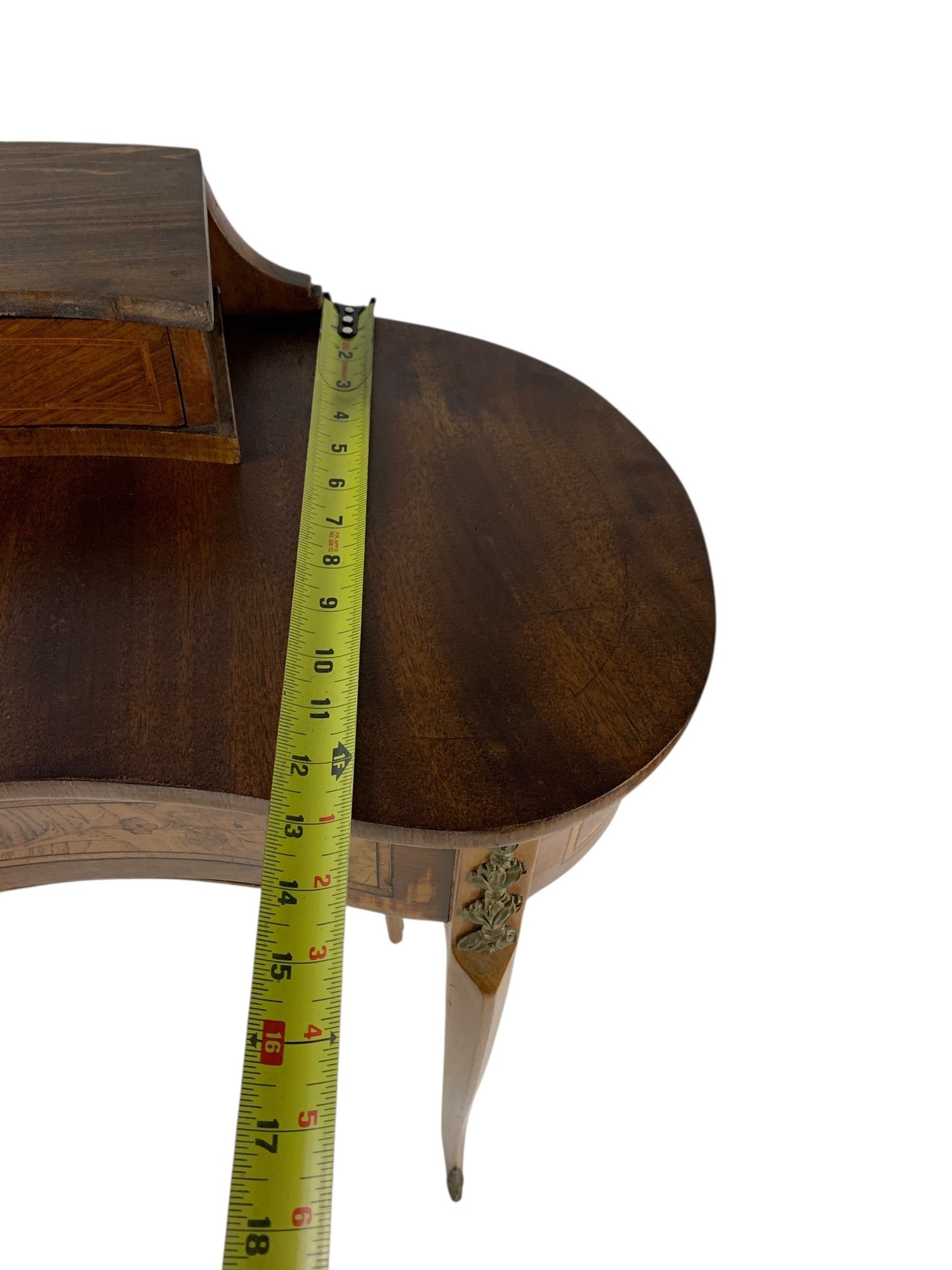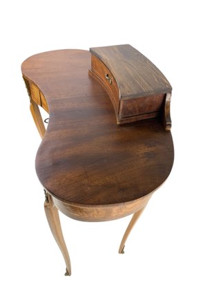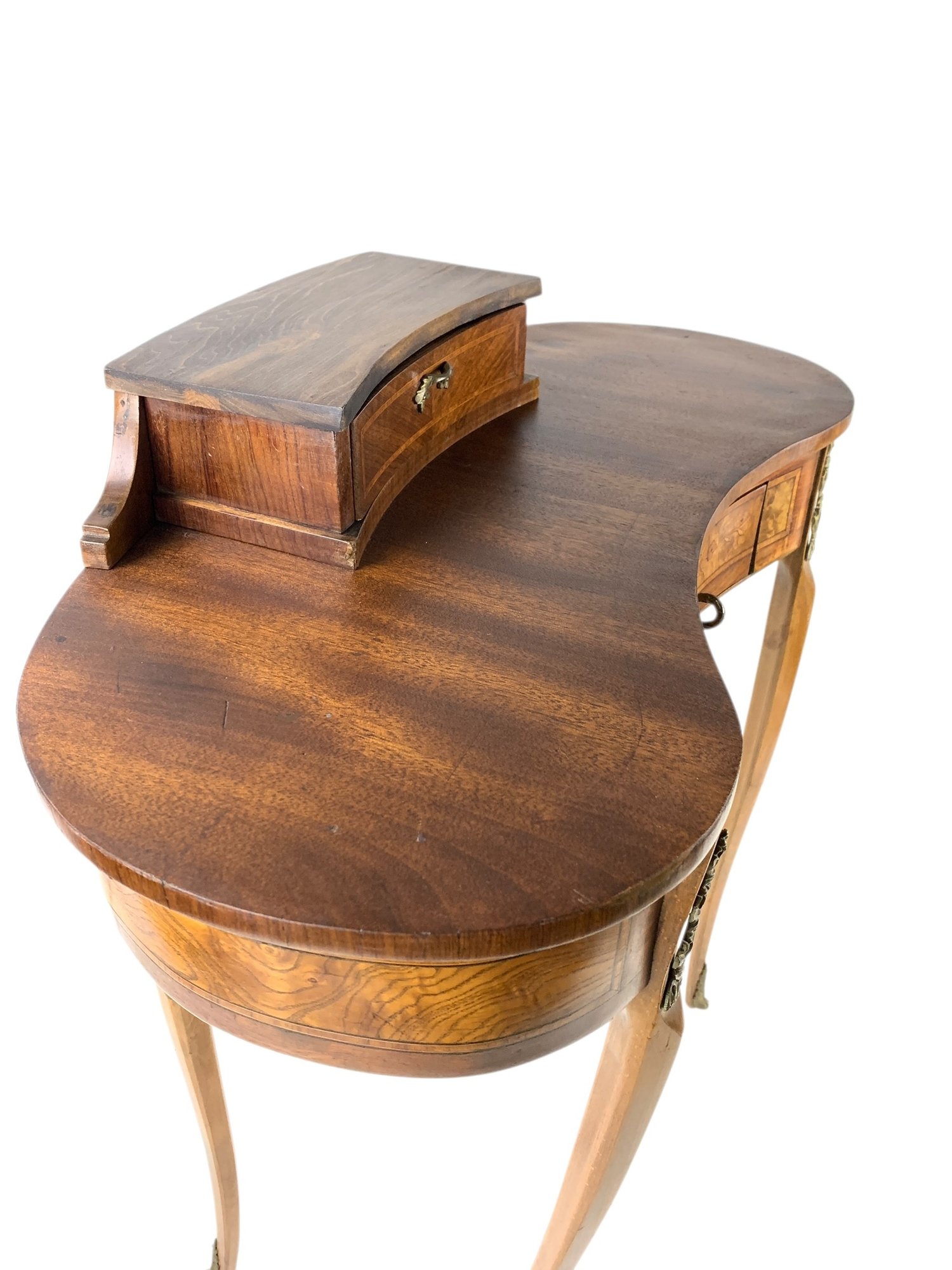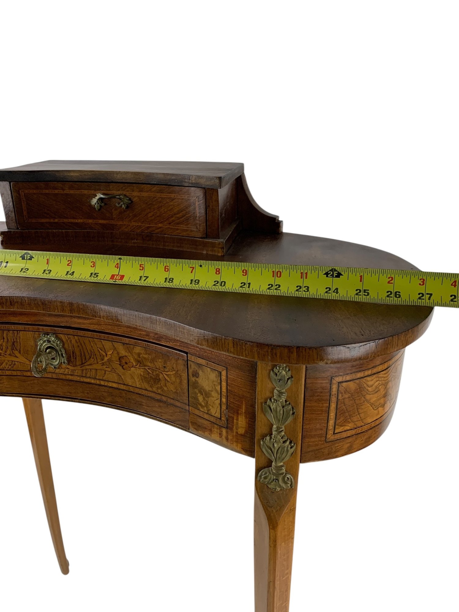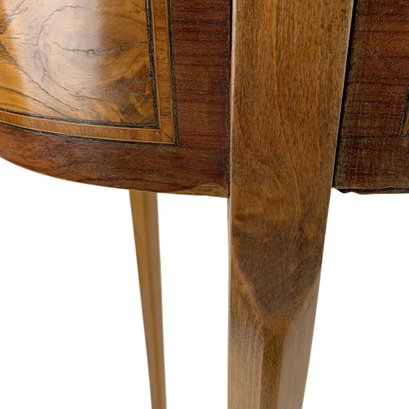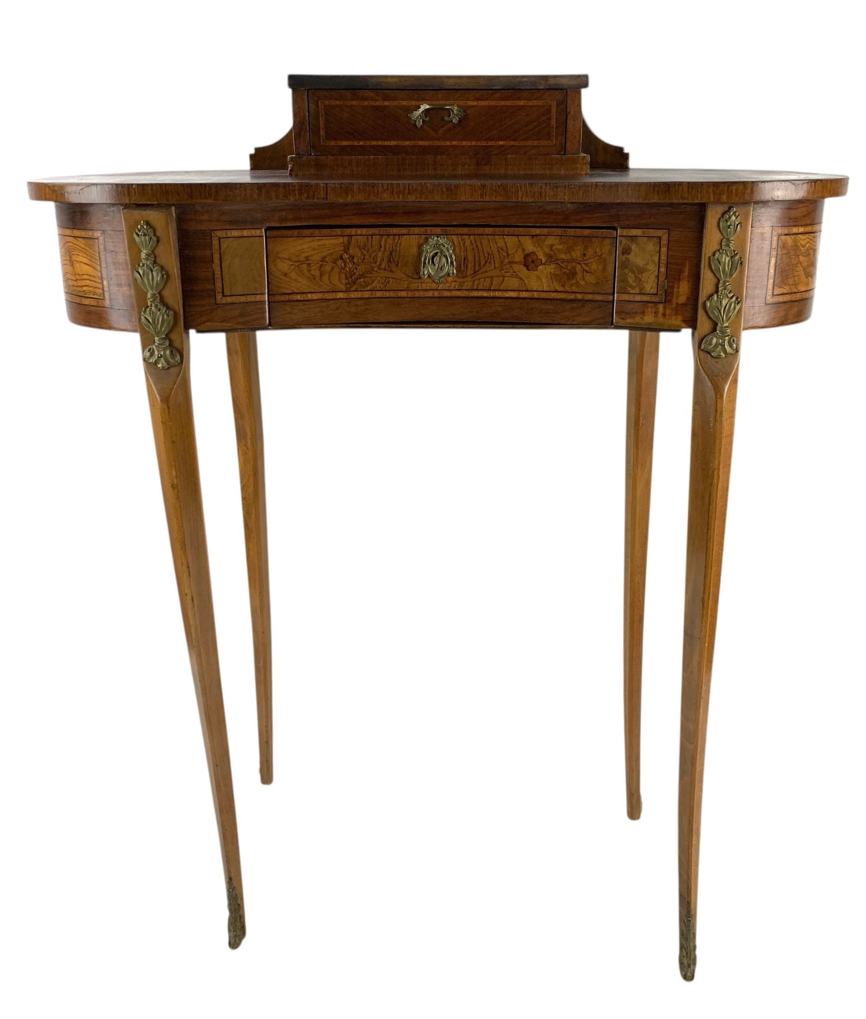 Features a locking main drawer, upper storage compartment with brass feet and hardware.