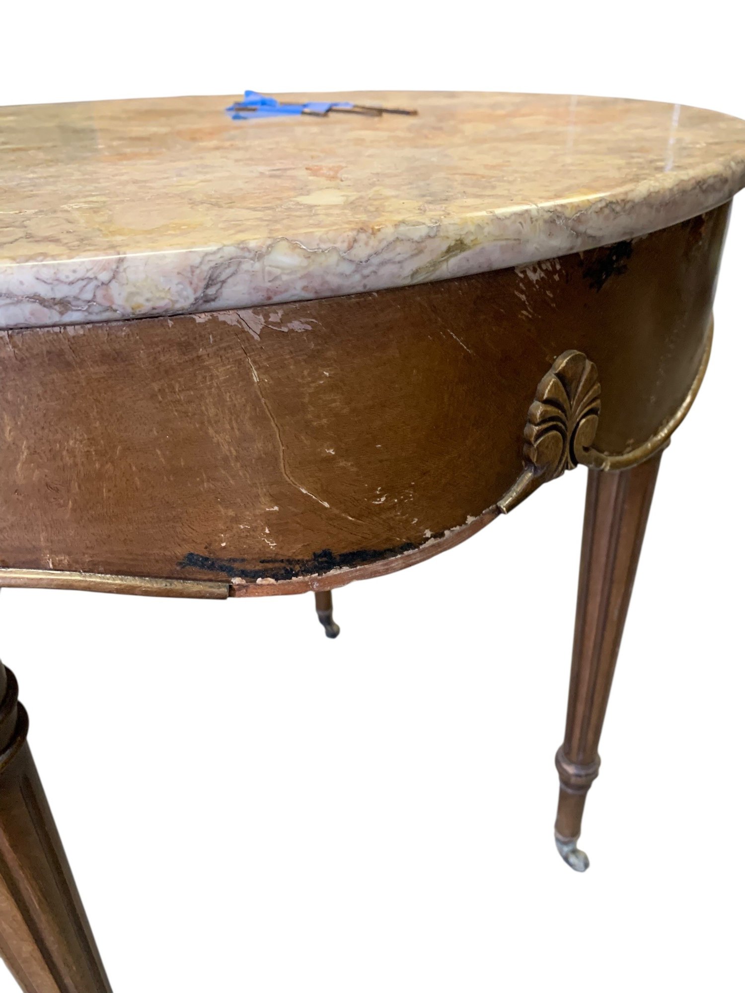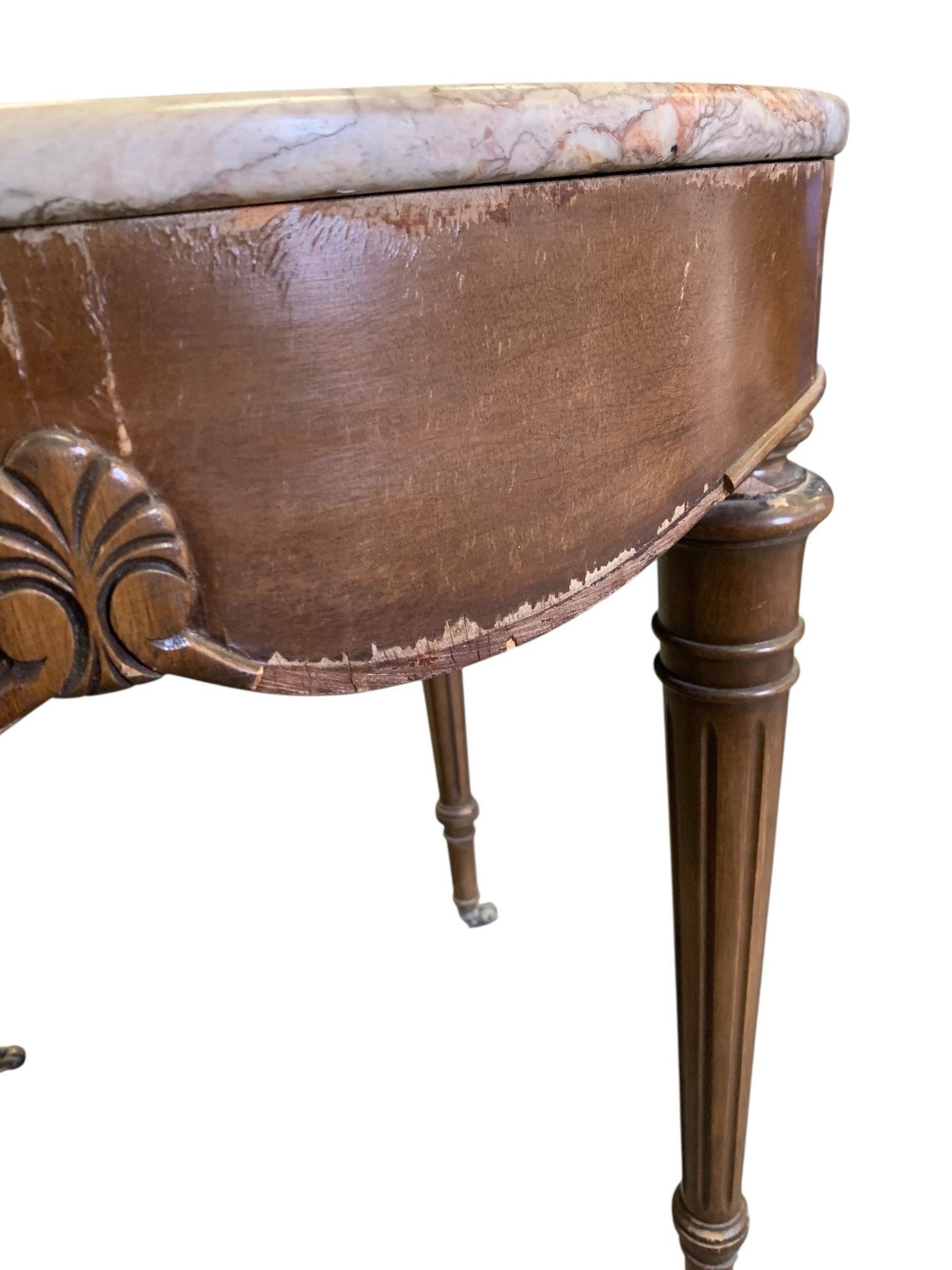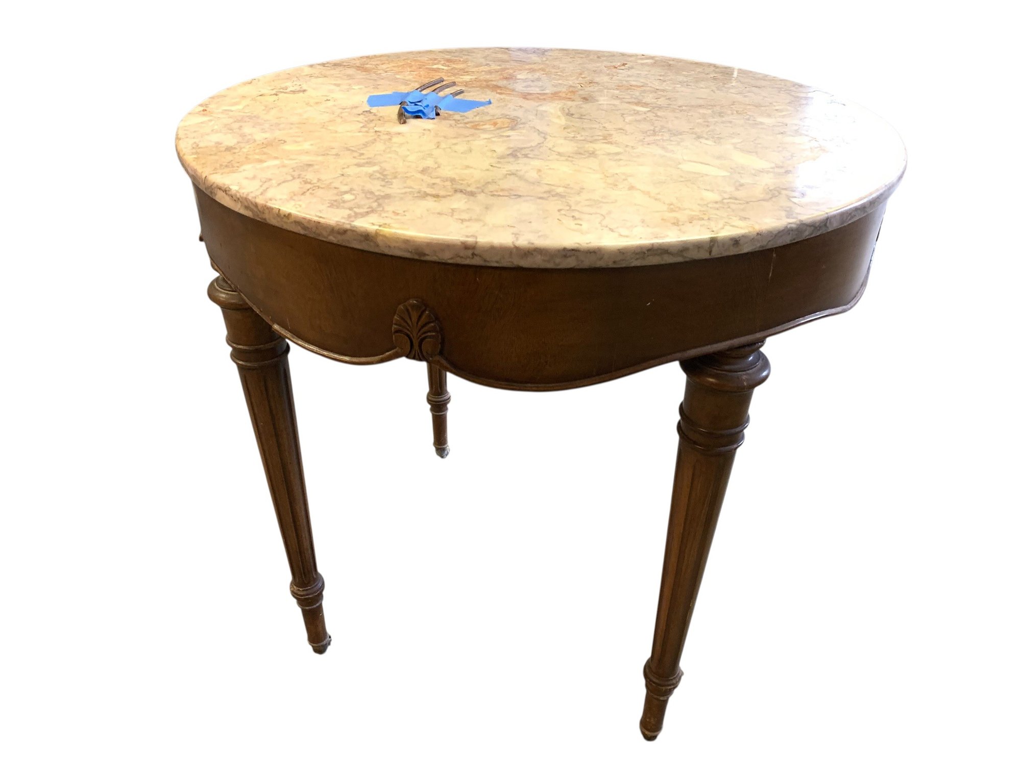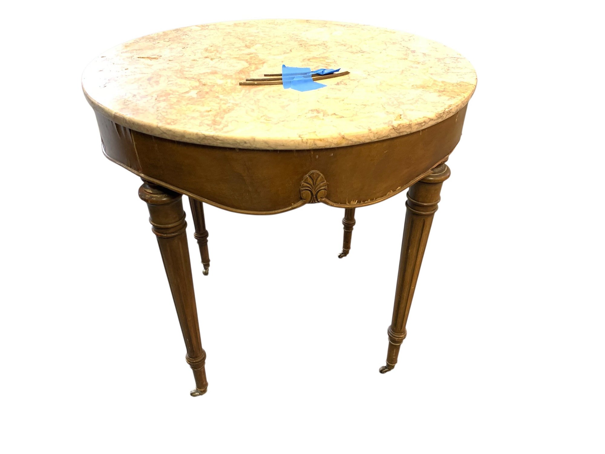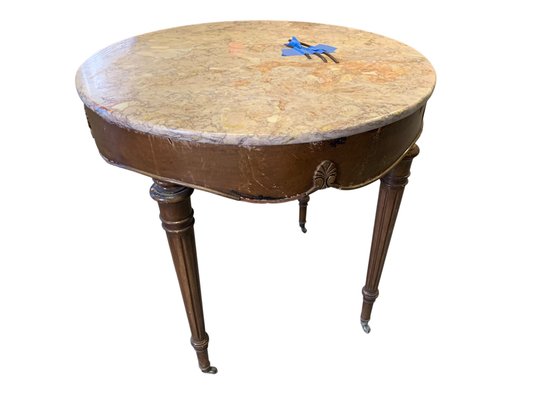 Mounted on castors with a Portuguese marble table top.
