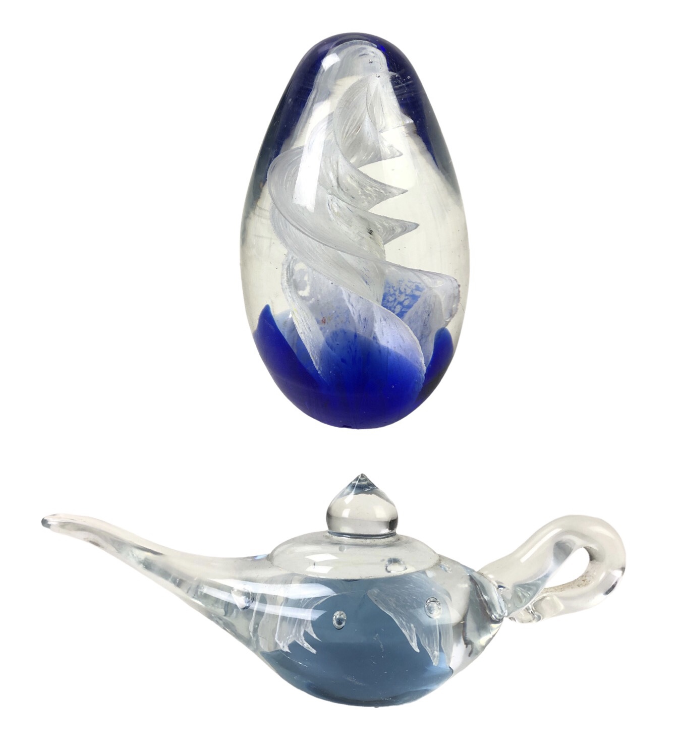 Fleabites noted along the bottom of the swirl glass and on the tip of the genie lamp (see photo #15).