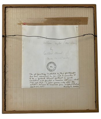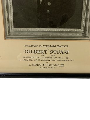 •Photograph of a portrait painting by Gilbert Stuart, examined by Harry B. Wehle (art curator for The Metropolitan Museum Of Art) for authenticity before the painting was presented to The Peddie School in 1961.