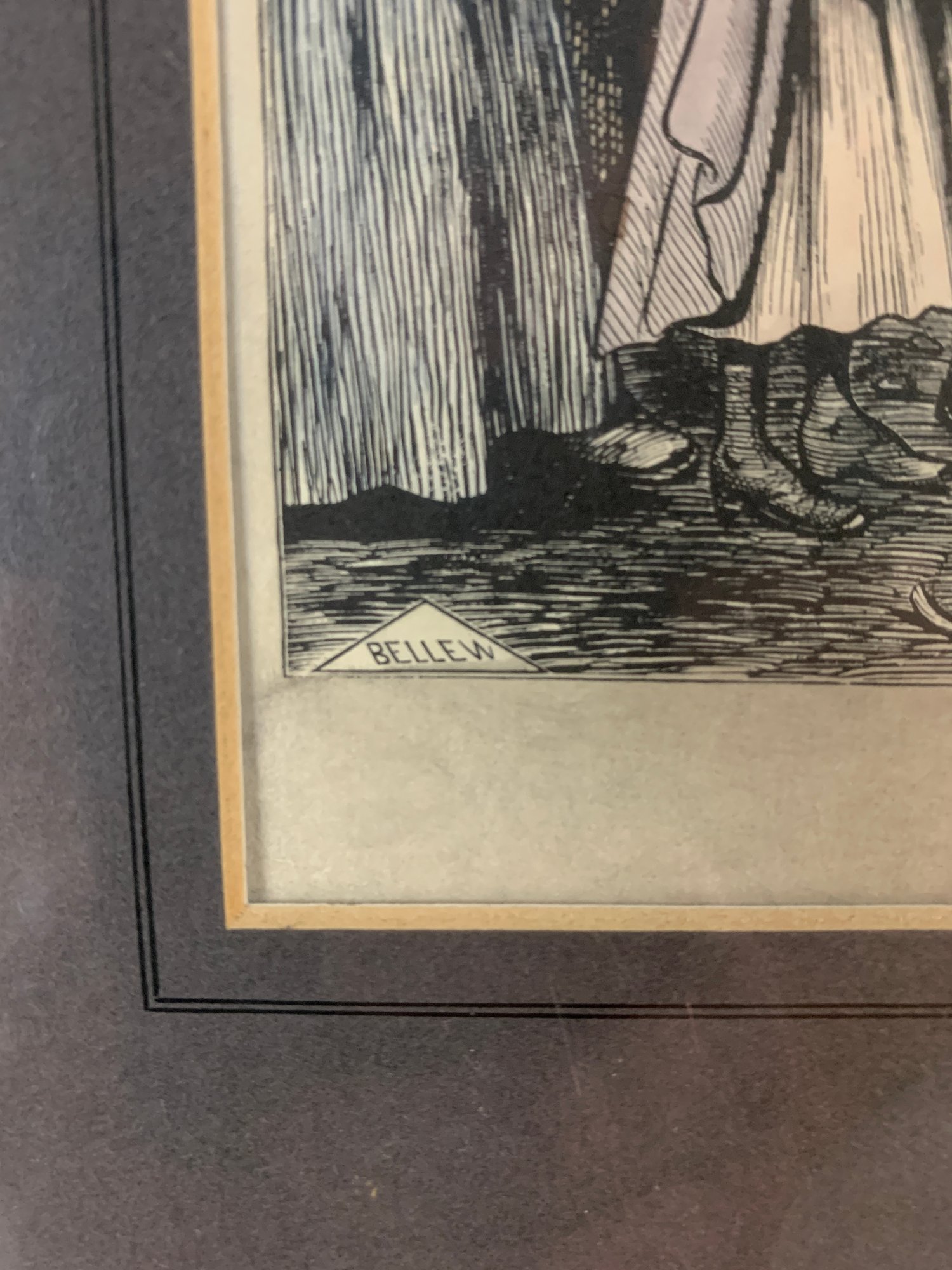 Framed and matted under glass.
