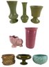 Hairline crack noted on the green footed McCoy Floraline planter.