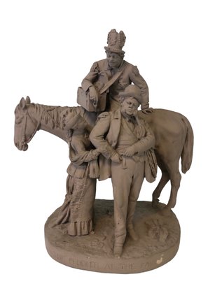 •Appears to be an original - has magnetic armature and the plaster under the paint is a cream color, both attributes typically associated with original John Rogers sculptures.