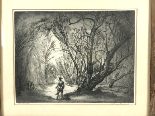 Framed and matted under glass - loose within the frame, needs extra supporting nails.