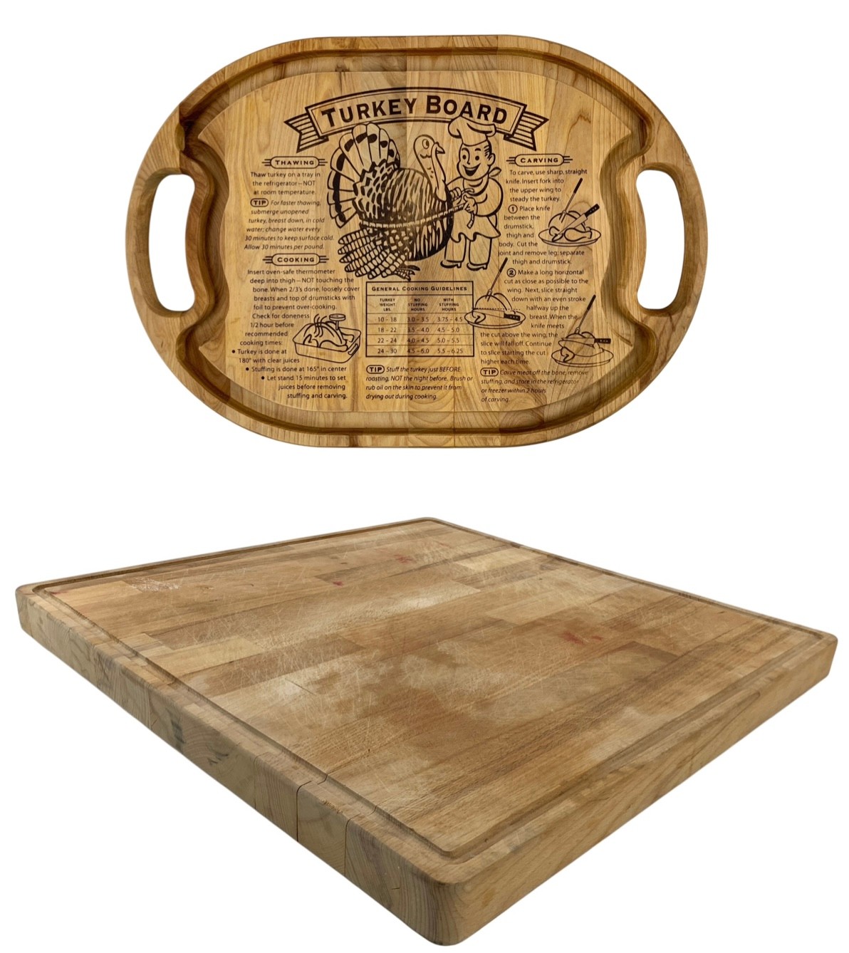 The Turkey board measures approximately 20-3/4"W x 14-3/4"D