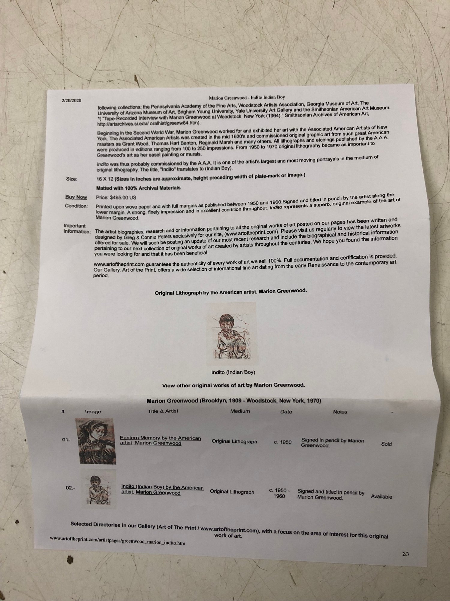 Artist information on verso.