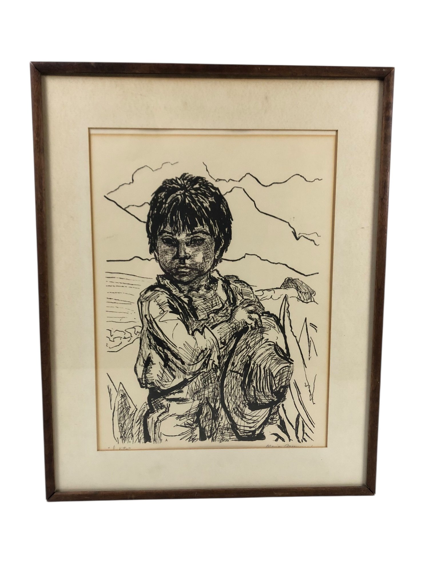 Framed and matted under glass.