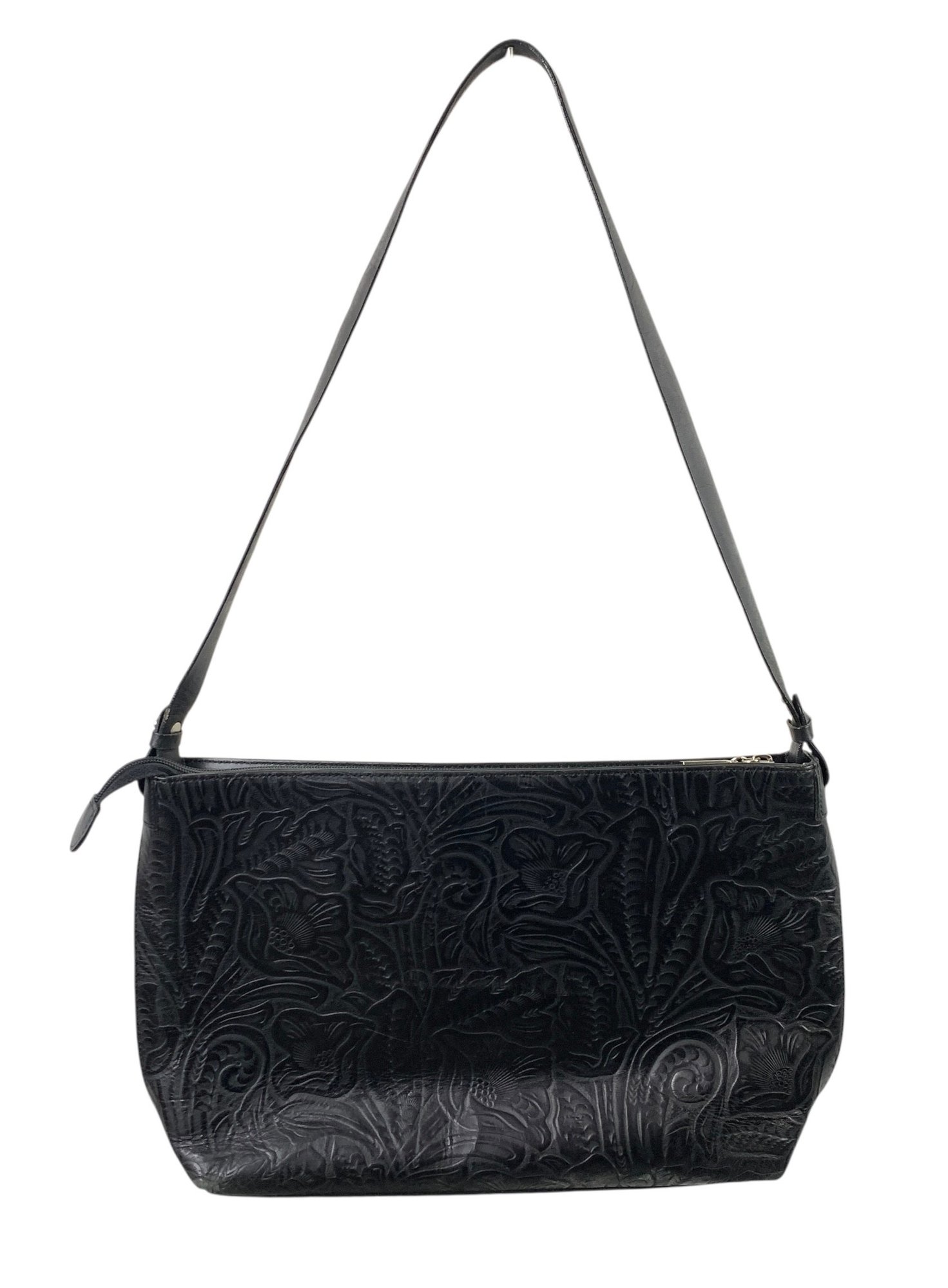 MAXX New York Black Floral Embossed Leather Shoulder Bag - #S19-3