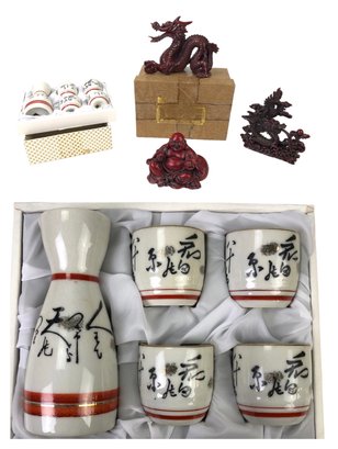One dragon figure has light wear on the underside of the base - otherwise in good condition.