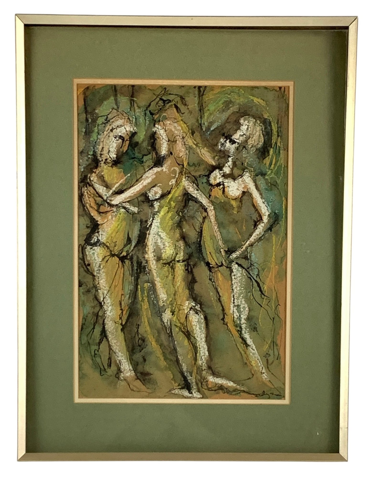Framed and matted under glass - glass is slightly loose within the frame.