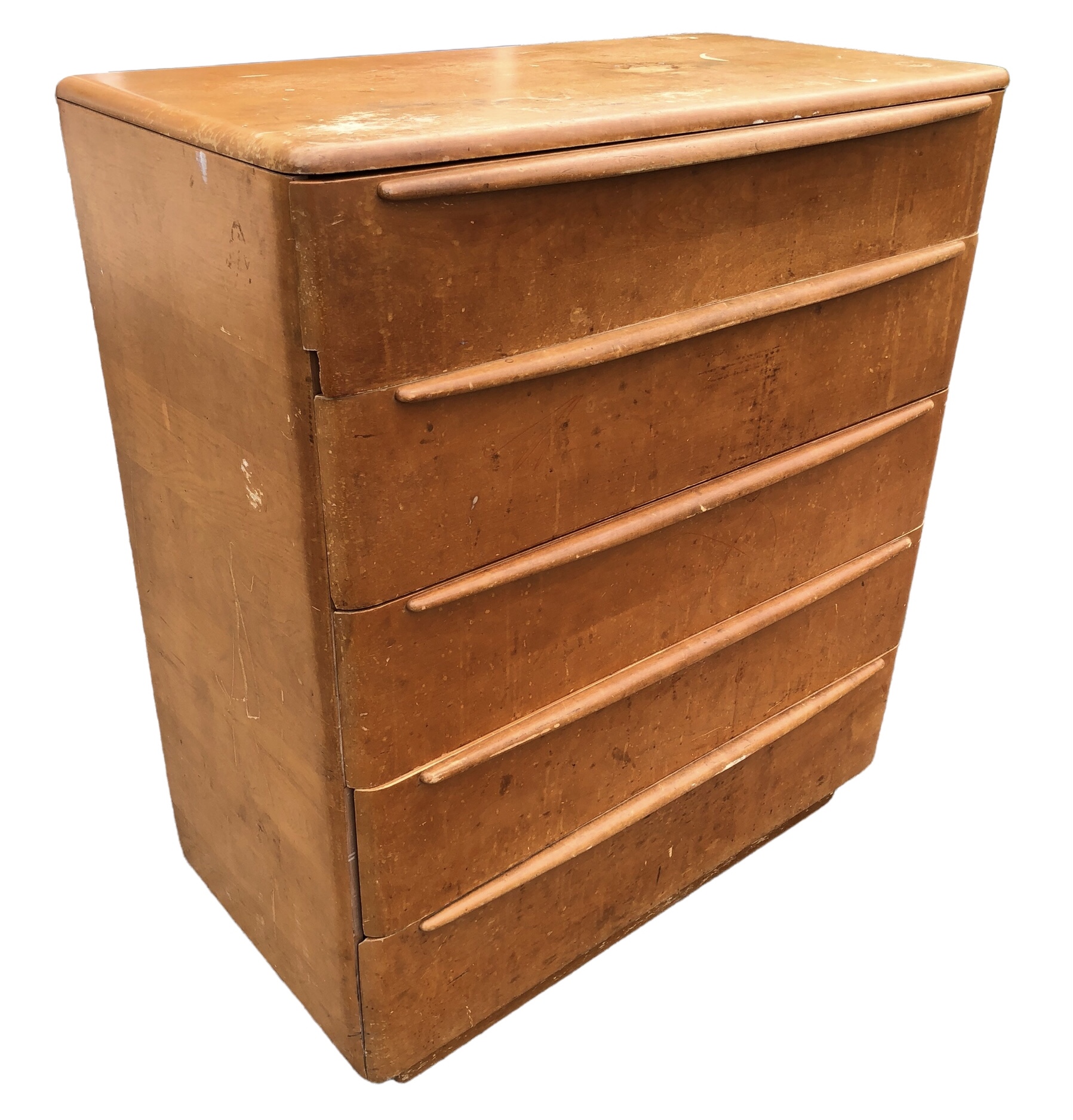 Heywood Wakefield logo stamped inside the top drawer on the left-hand side.
