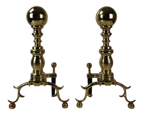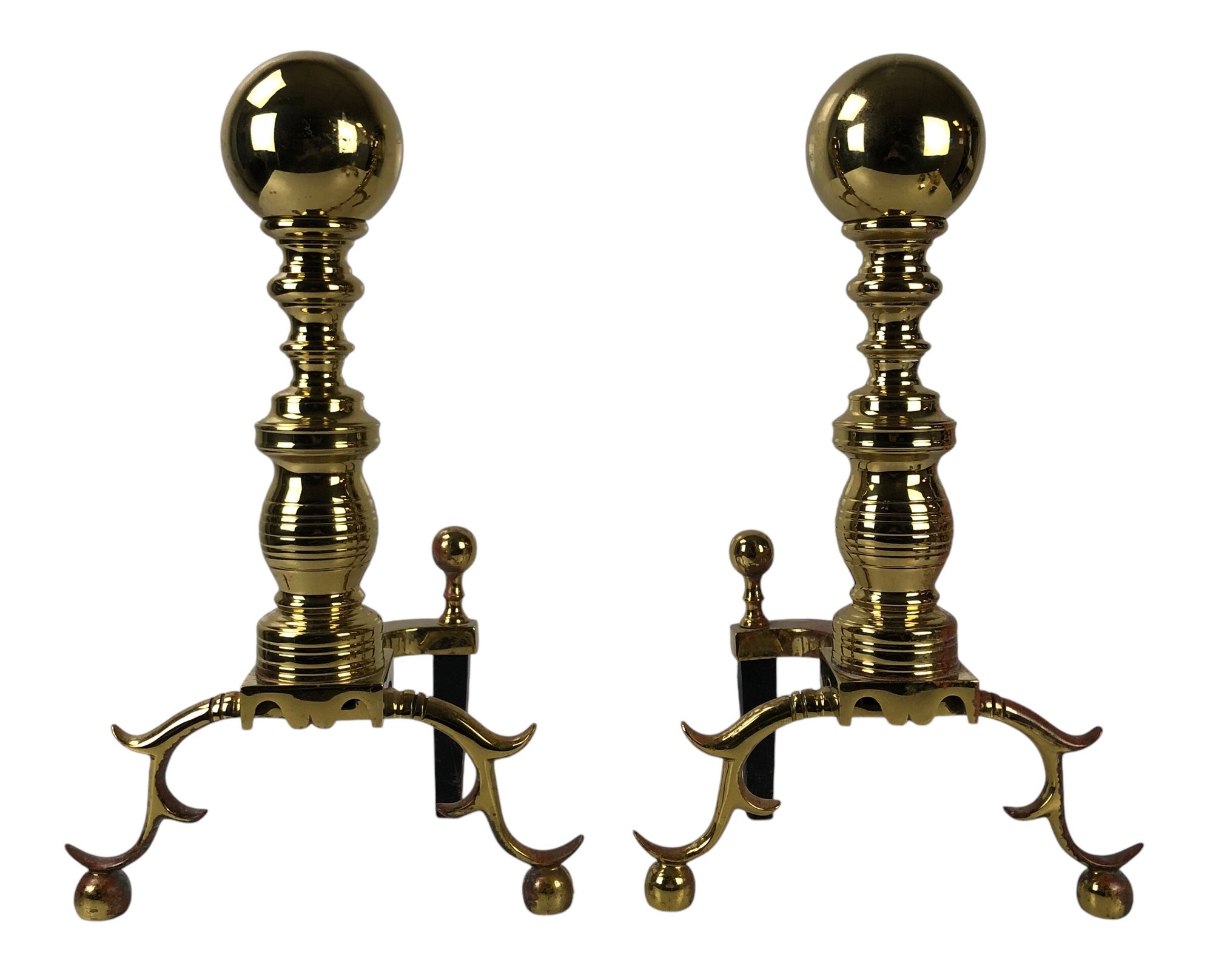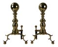 Virginia Metalcrafters logo embossed on the bottom of each andiron.