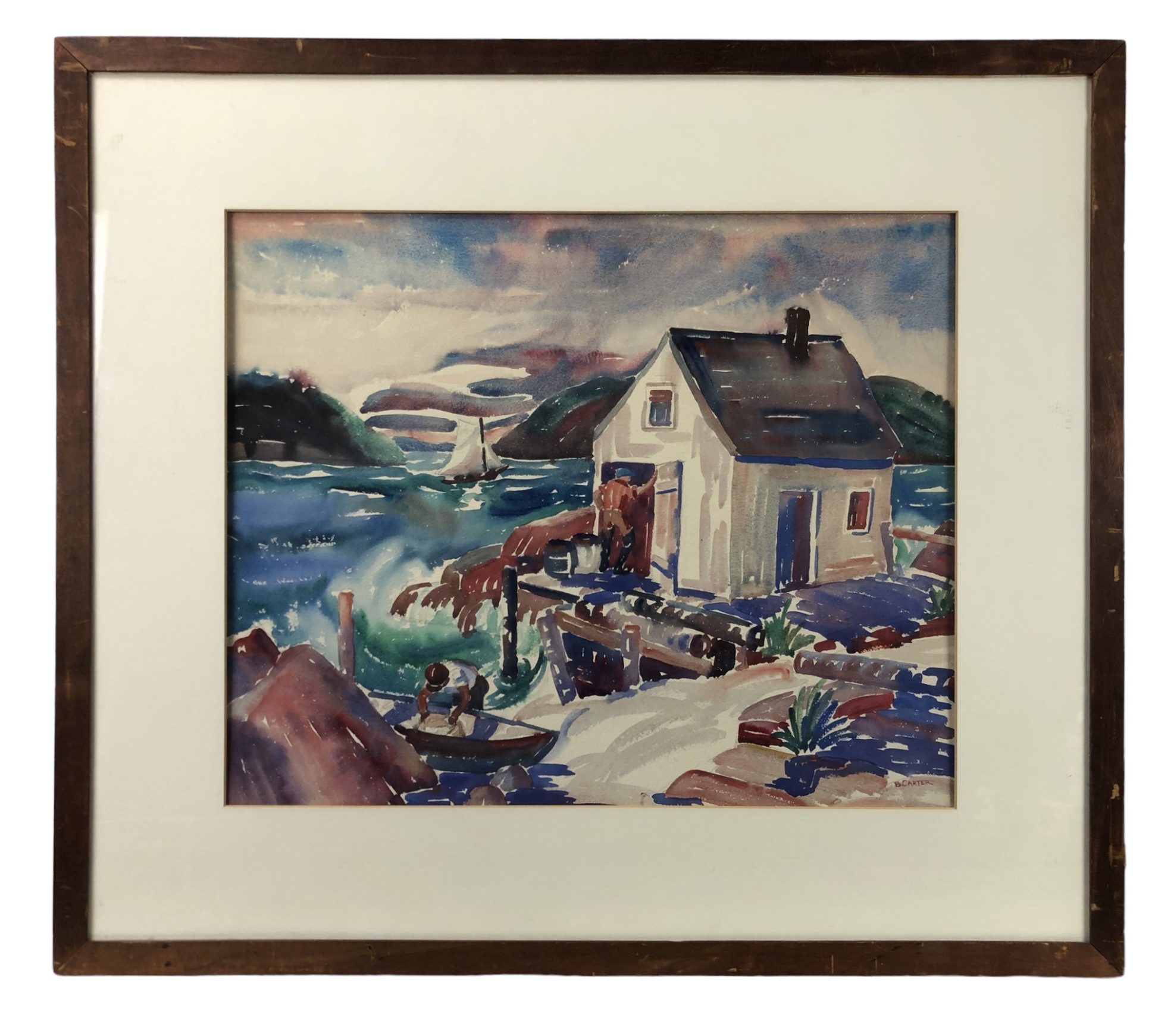 Framed and matted under glass.