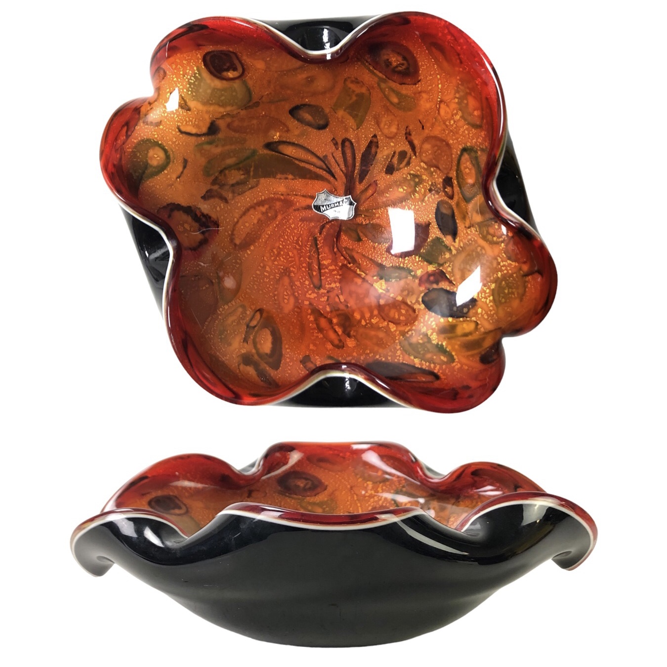 Includes original manufacturer labels affixed to the interior and base of the bowl.