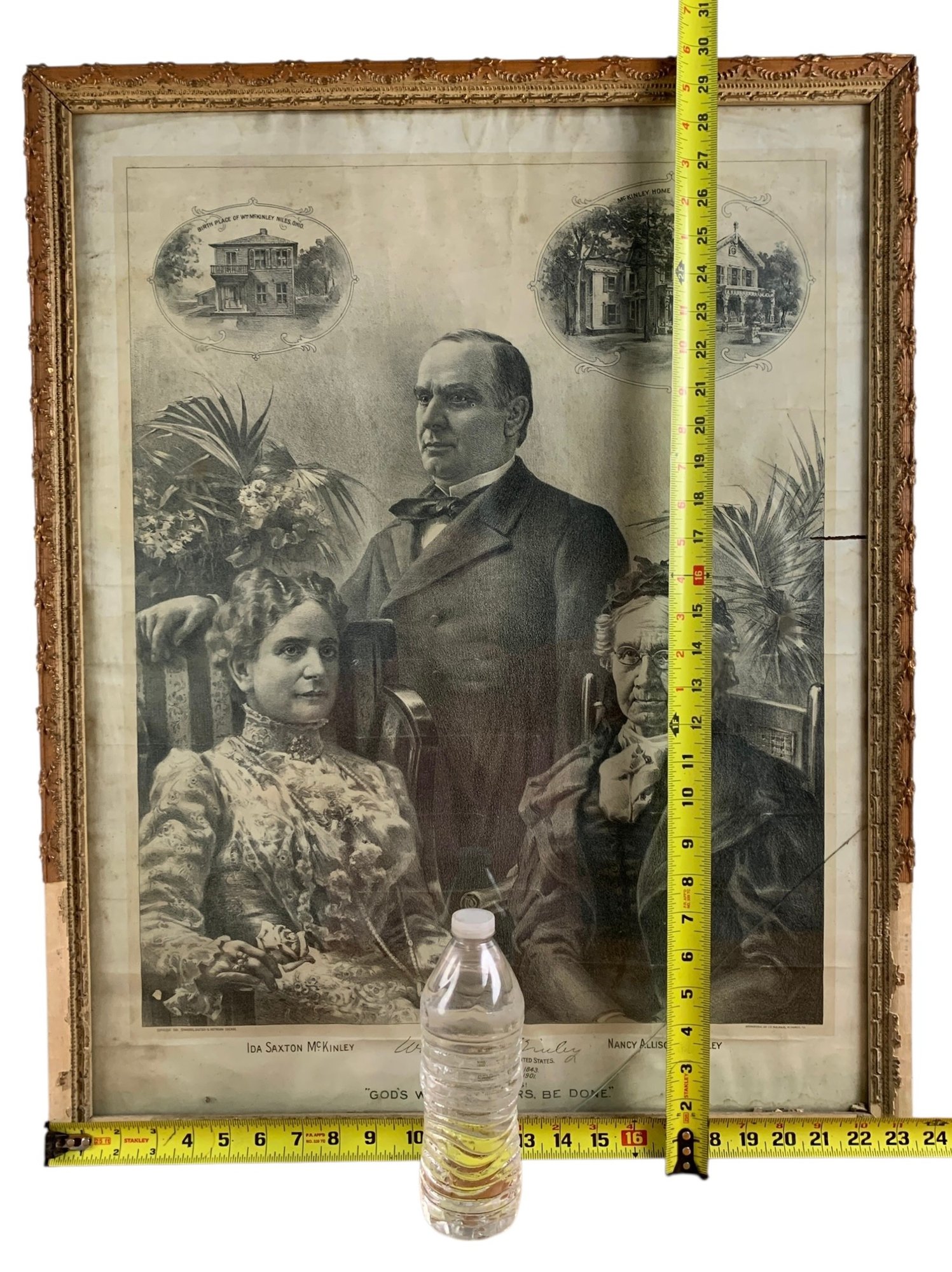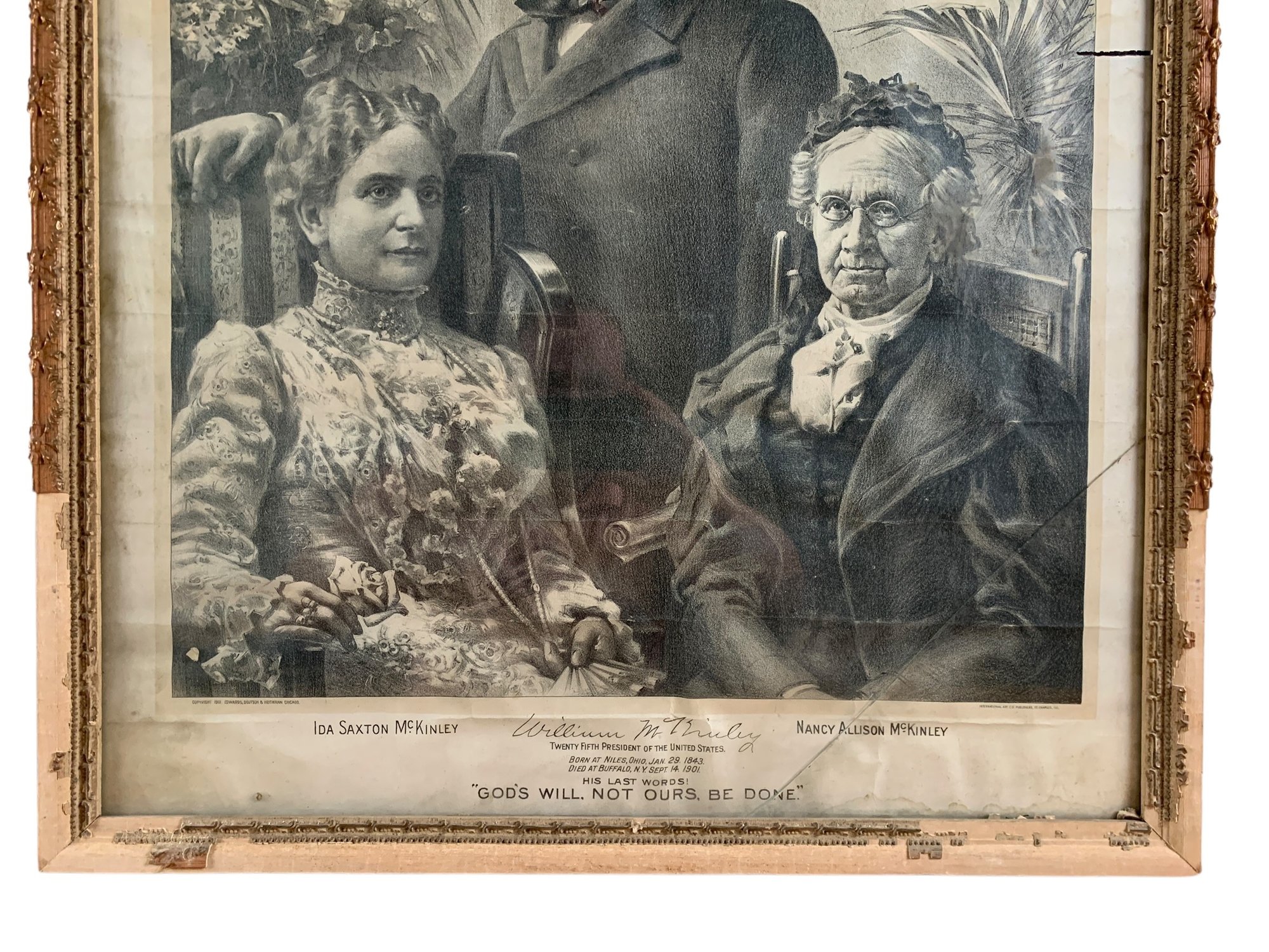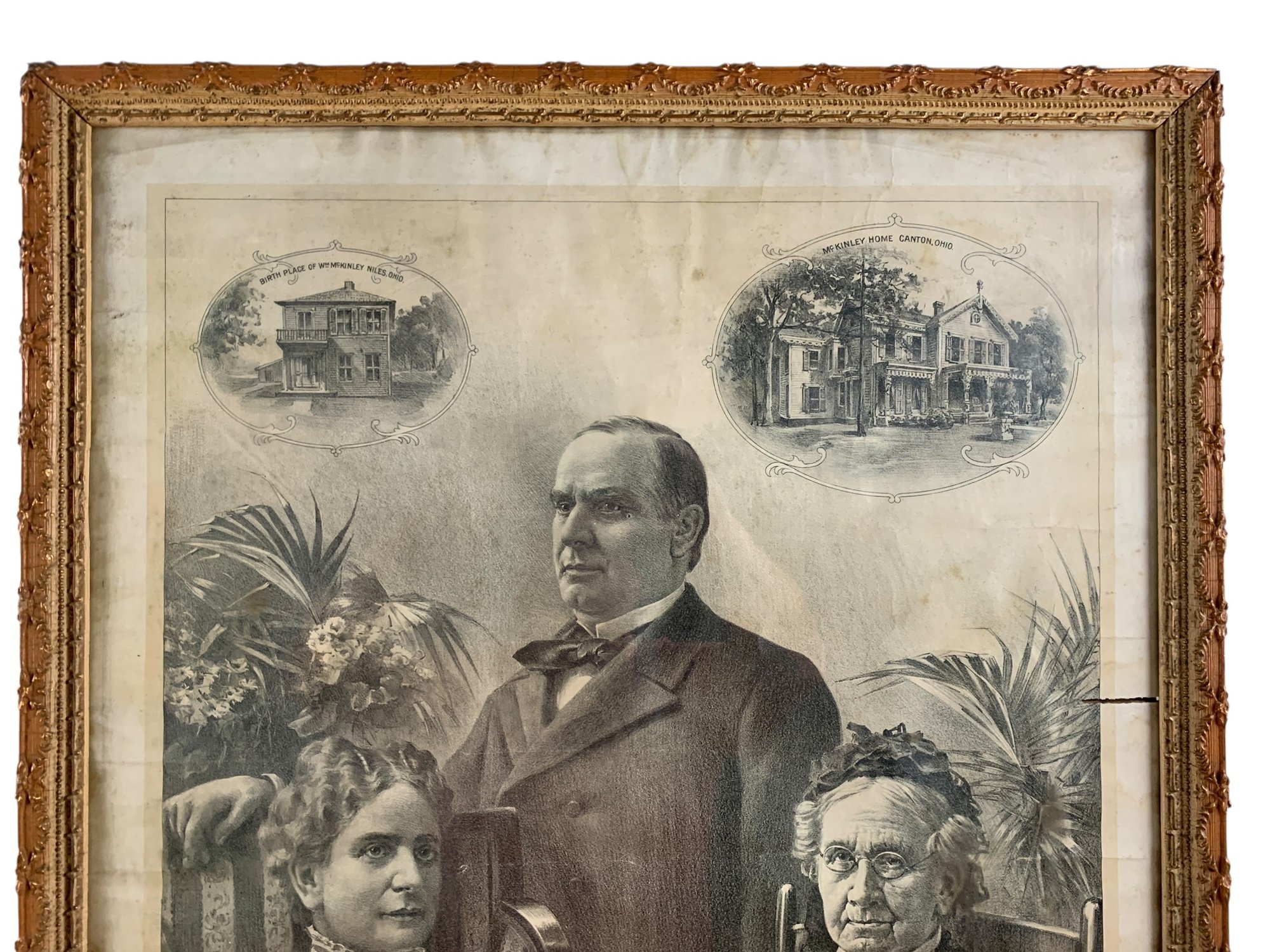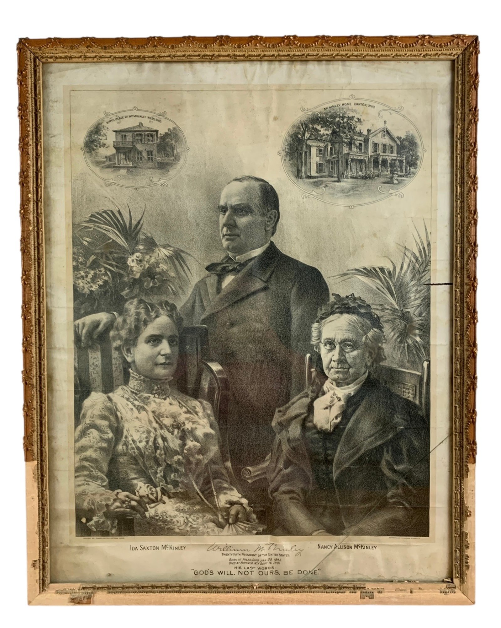 Framed under glass - glass is cracked on the lower right corner, losses noted on the frame.