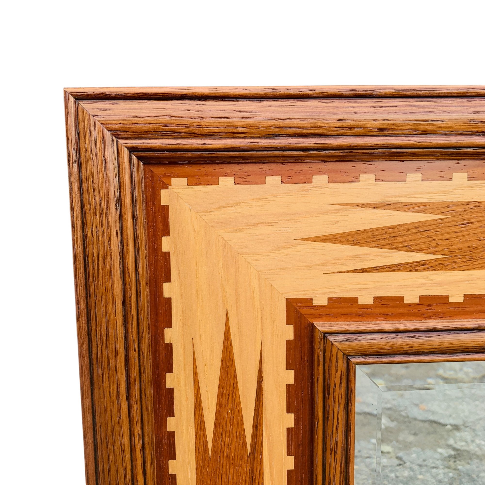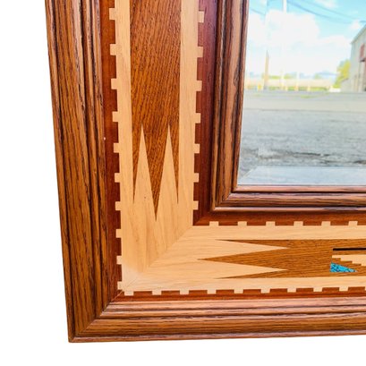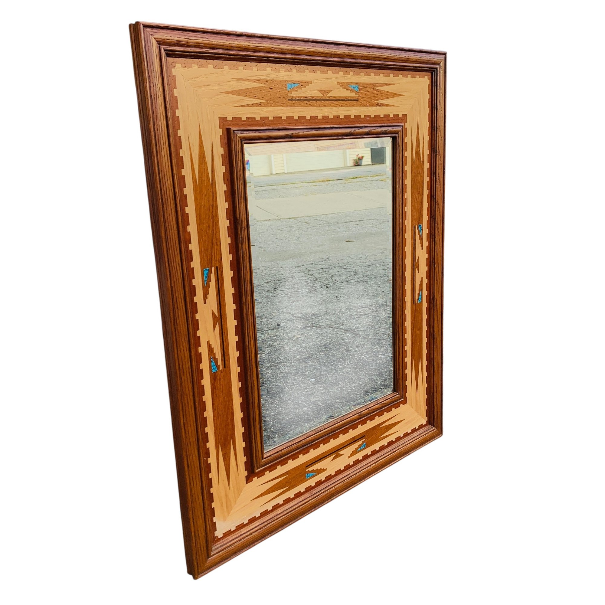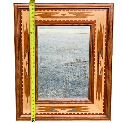 Webbed turquoise and wood inlay in a Southwestern motif.