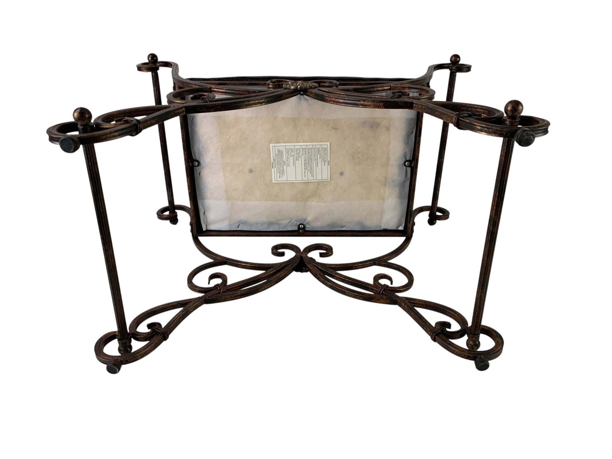 Iron frame is sturdy, good condition.