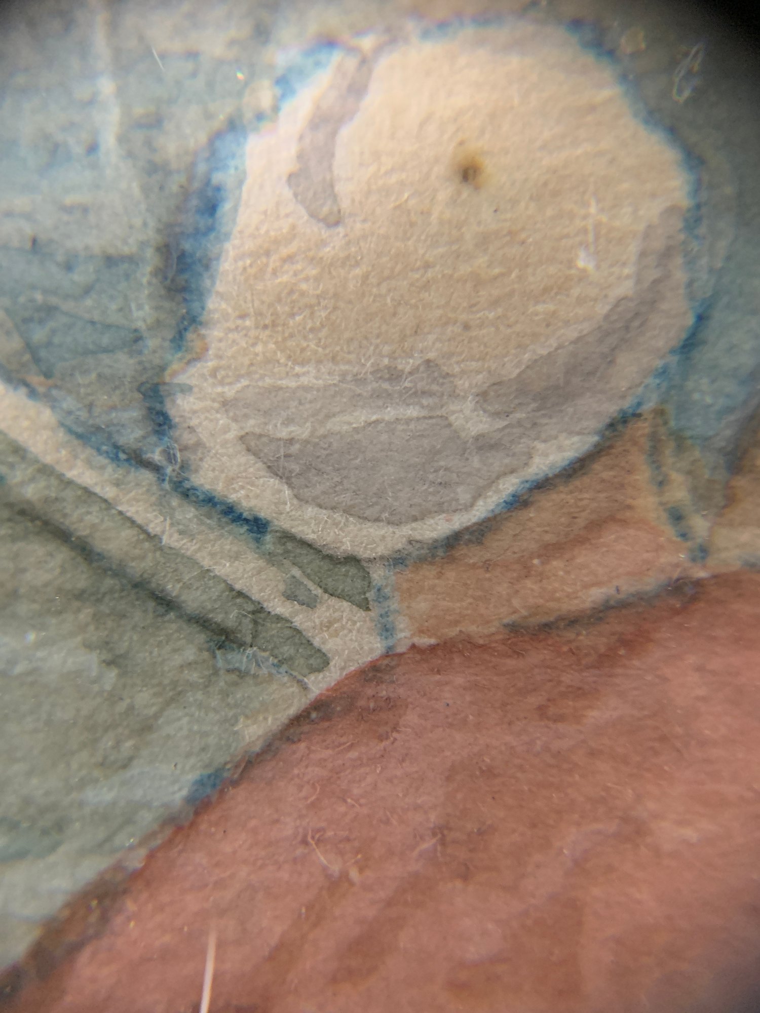 Some wear noted such as creasing, a small hole on the lower left corner, foxing, etc.