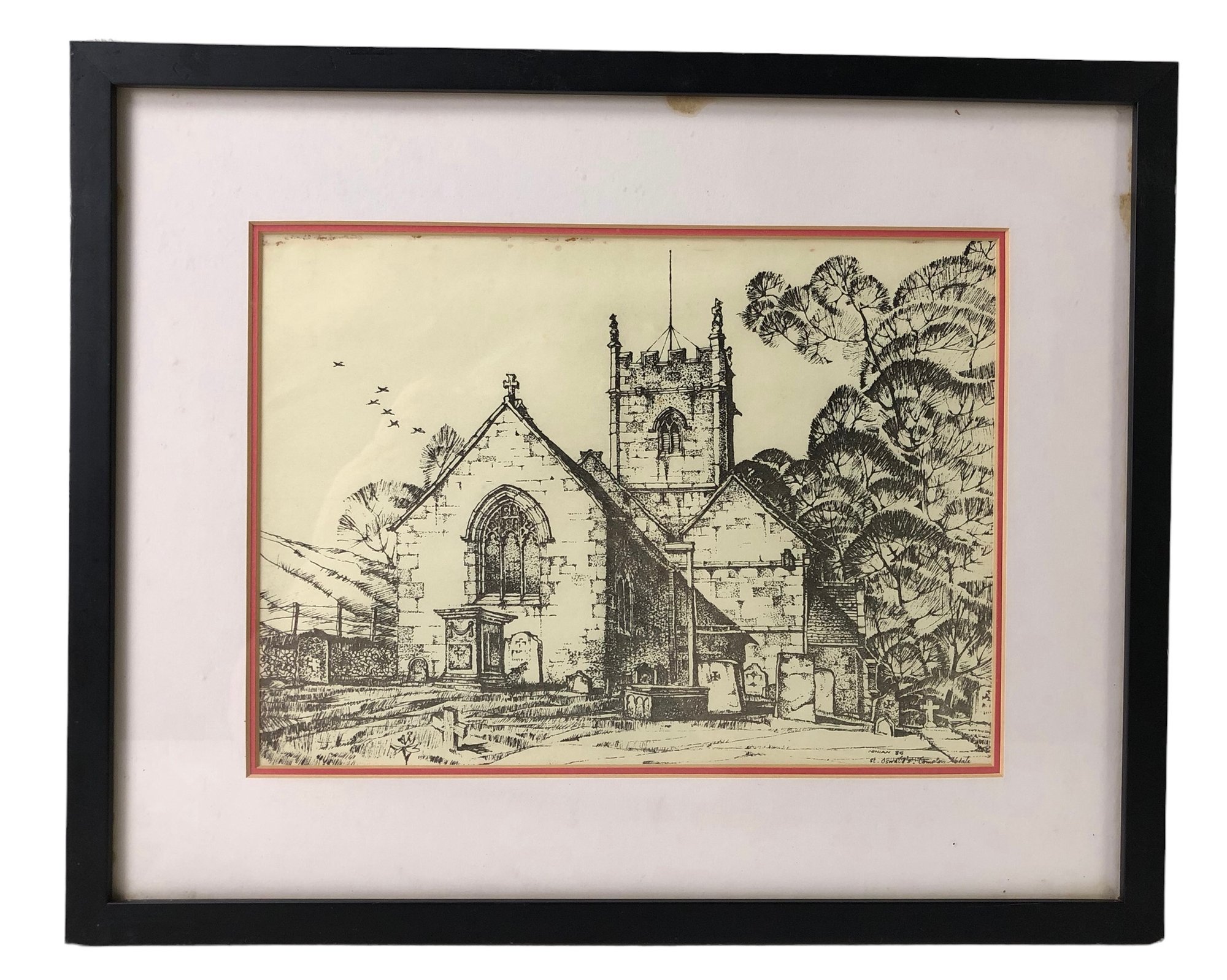 Framed and matted under glass.