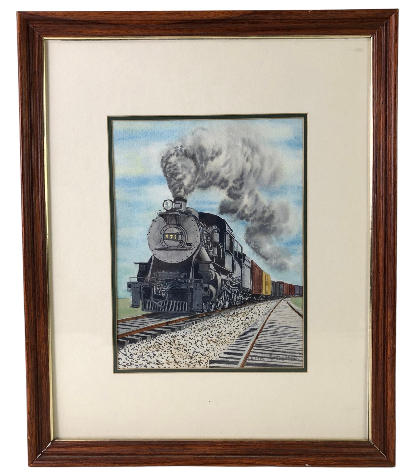 Framed and matted under glass.