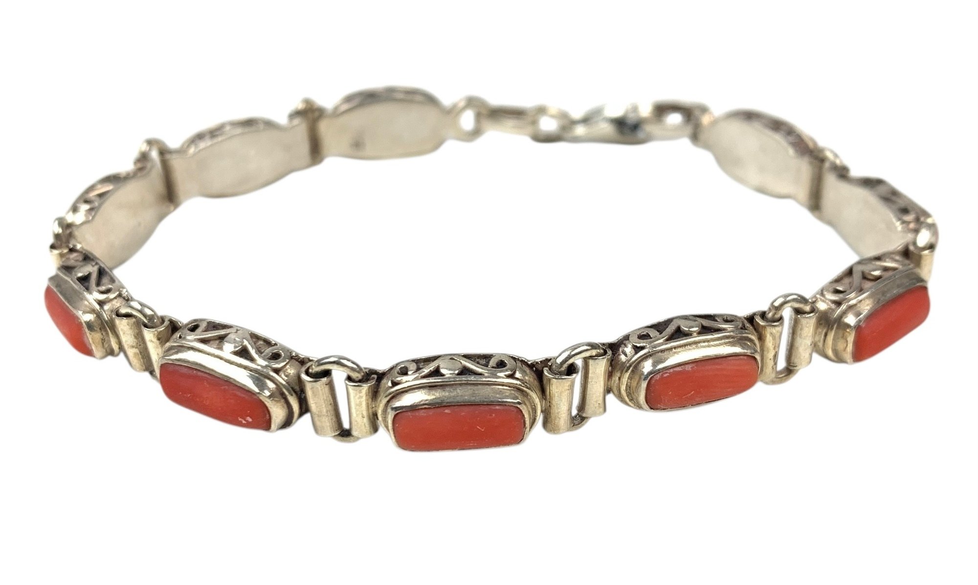 Stamped 925 and hallmarked "TH" on the clasp.