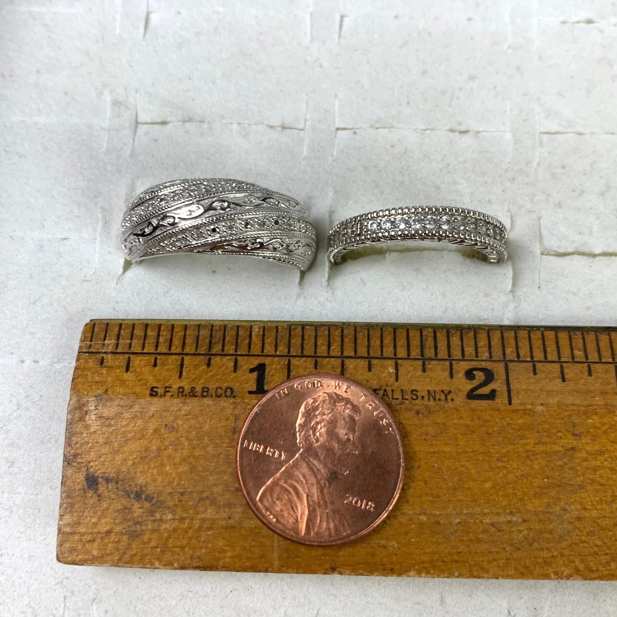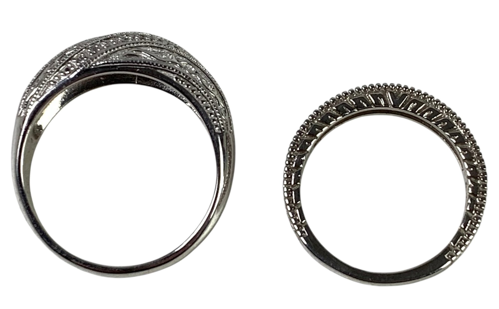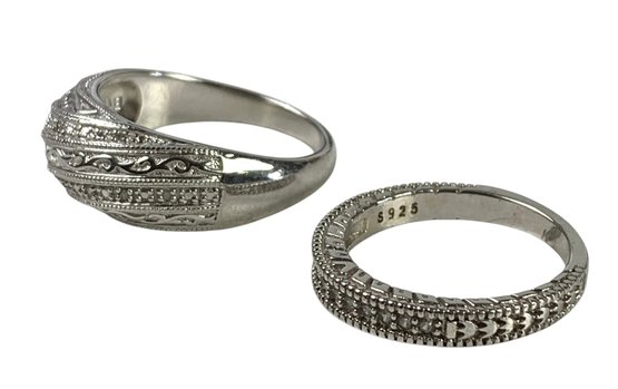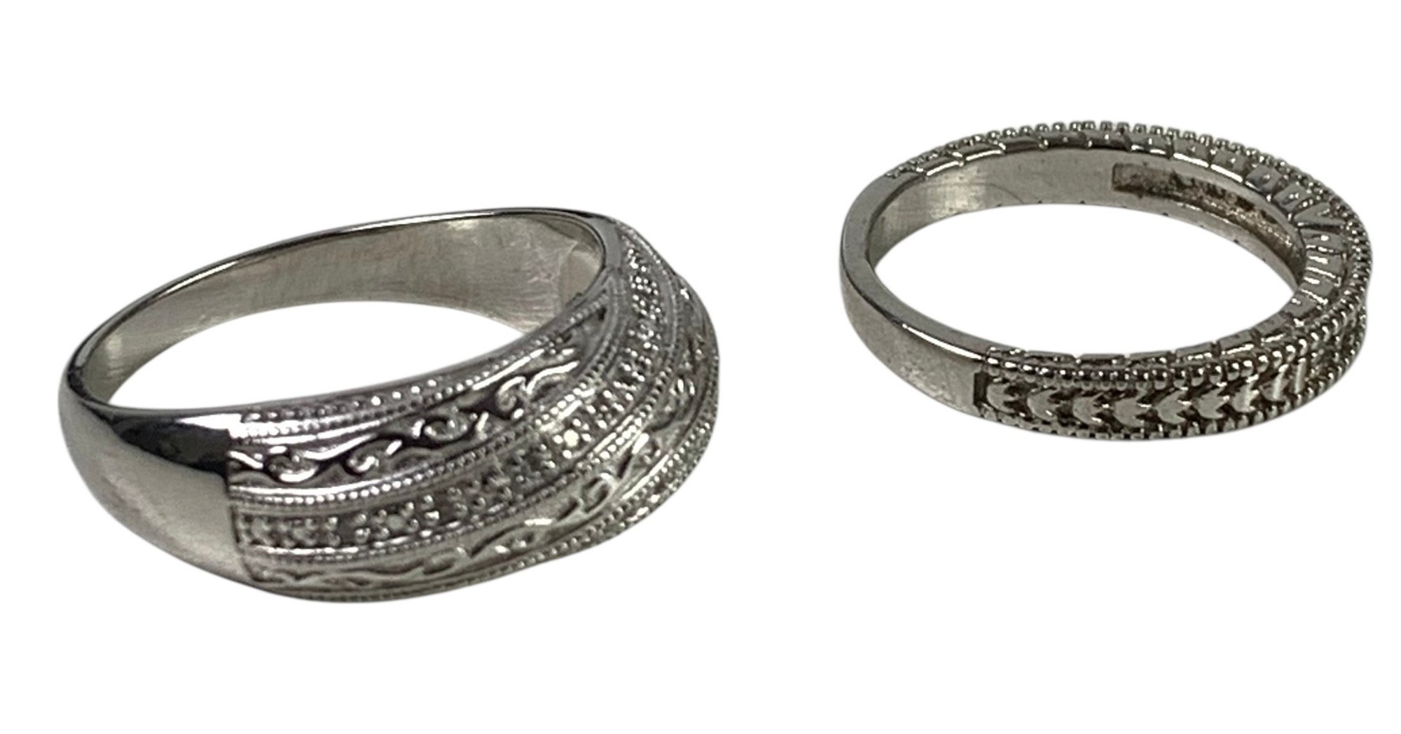 Both rings are stamped 925 on the shank, however the cubic zirconia ring is magnetic.