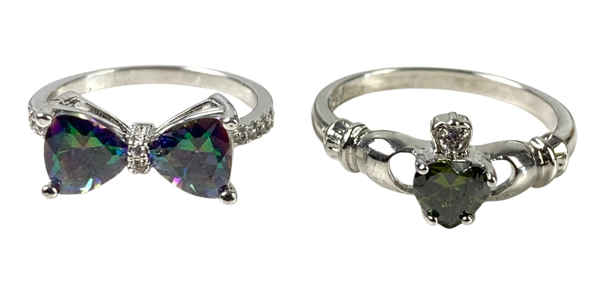 The Claddagh ring is stamped 925 on the shank (size 10).