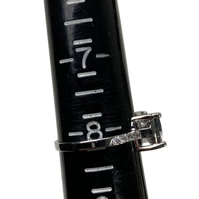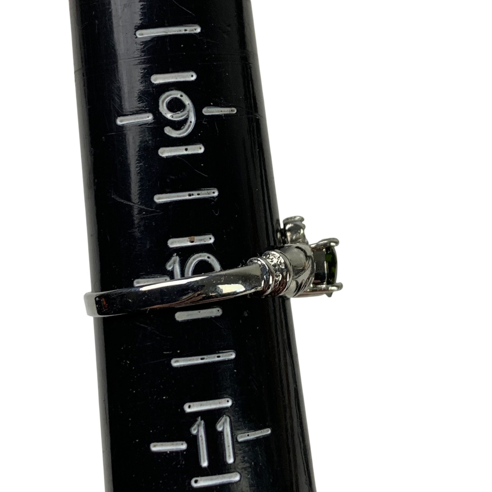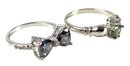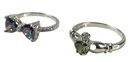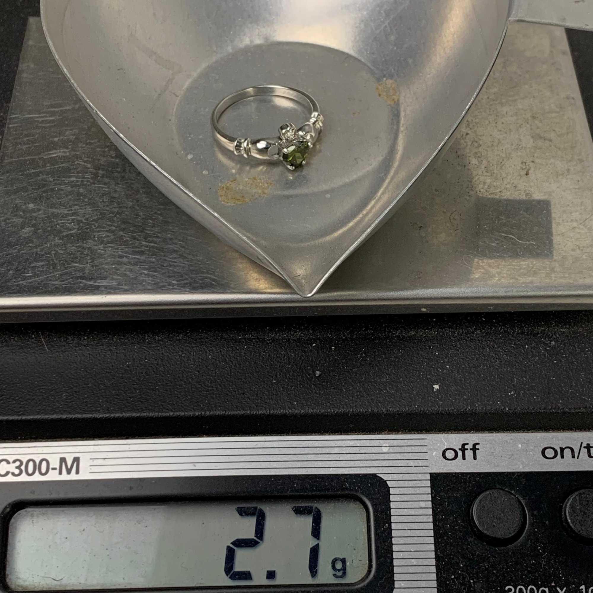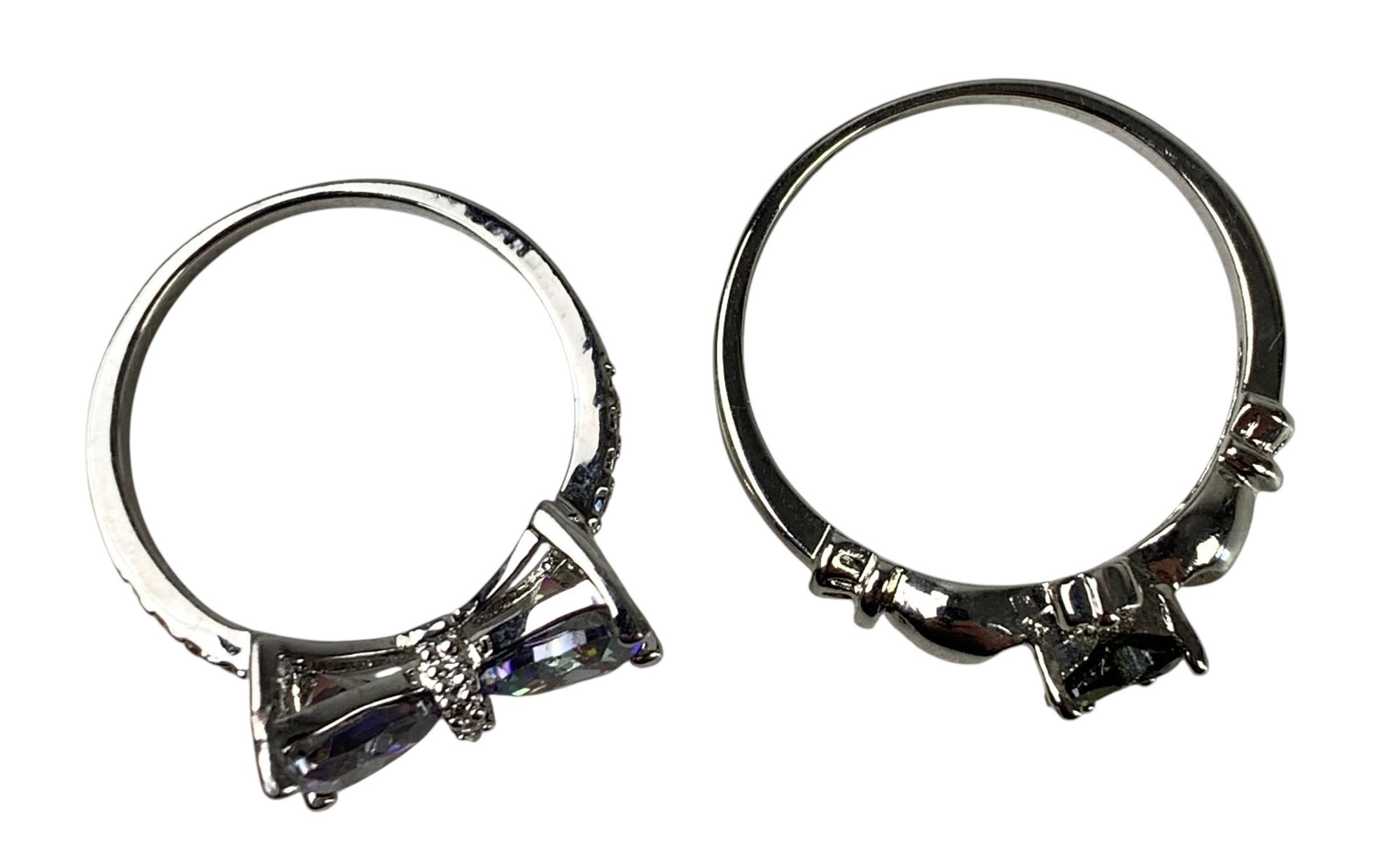 The bow ring is unmarked - non-magnetic, acid tests positive for silver (size 8).